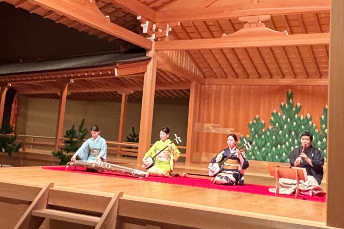 箏、三絃、尺八、地歌がうまく溶け合う合奏が見事で、表現力豊かな円熟味のある素晴らしい演奏だった。また、尺八の演奏方法の違いを楽しめる意欲的な構成も秀逸で、古典の真髄を感じさせた。加えて、能舞台を生かし、虚無僧姿の尺八奏者が橋掛かりを進む演出は観客の心をつかんだ。プログラム解説も丁寧で、伝統芸能を次代に受け継ごうとする意欲を感じる公演だった。