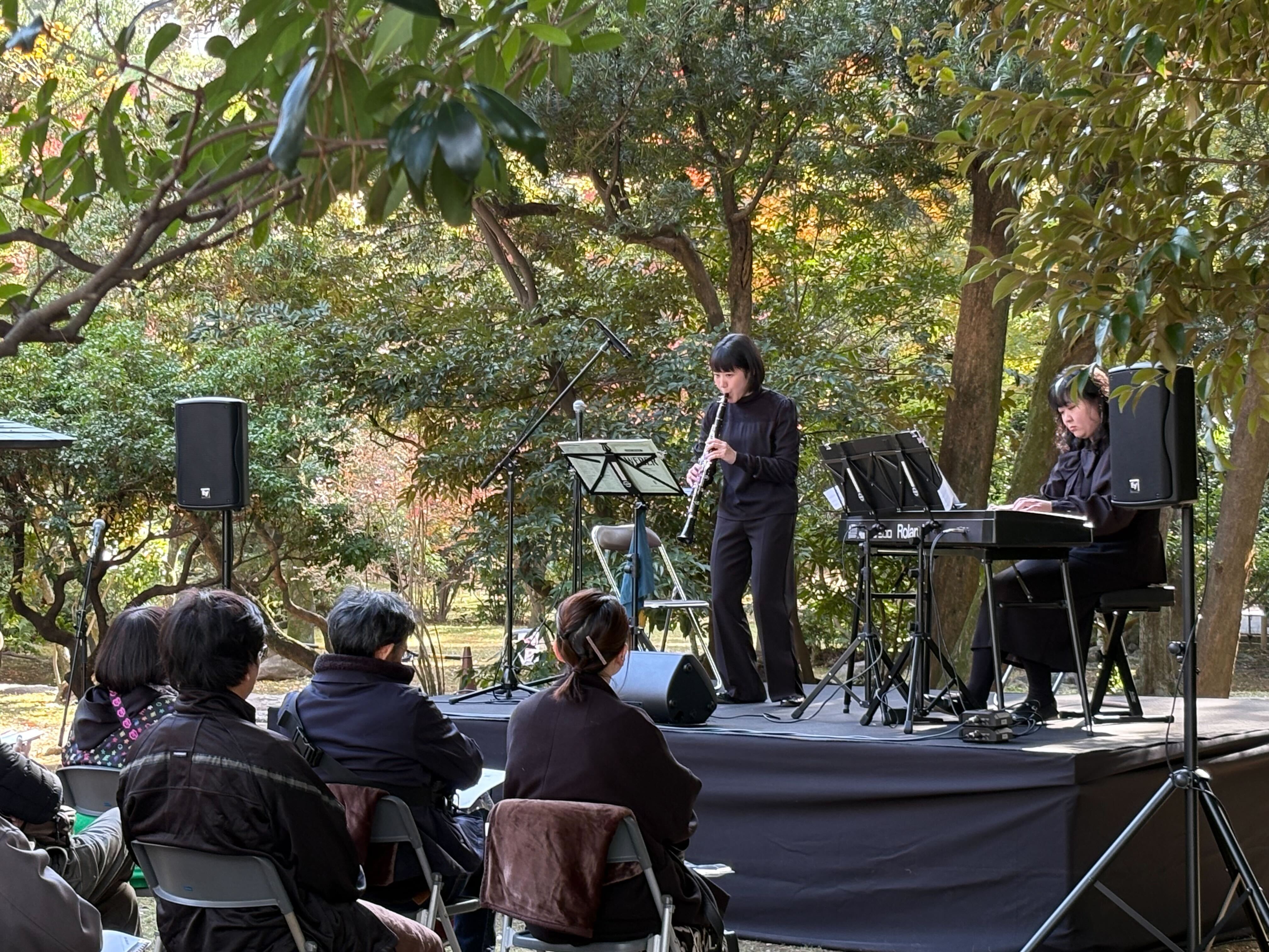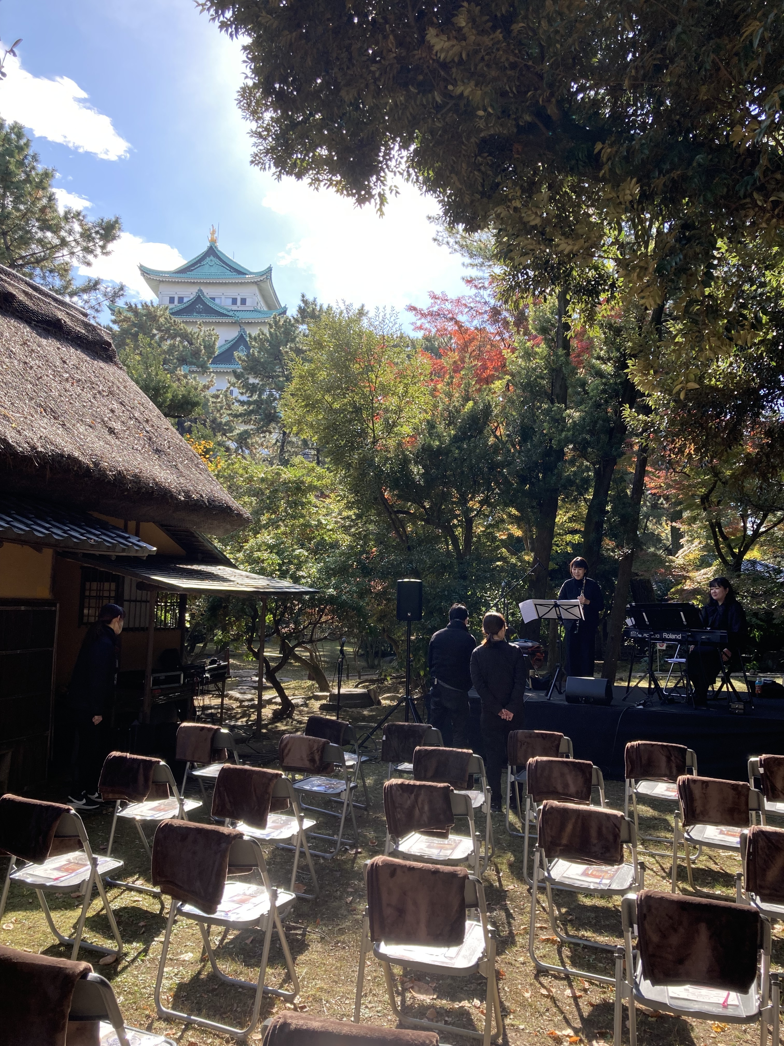 秋の名古屋城庭園を、クラリネットとピアノの素敵なメロディーで彩った「名古屋城茶席庭園コンサート」において、出演者や音響、客席設営の手配、チケット販売、広報など、企画から当日の運営までをトータルでサポートしました。