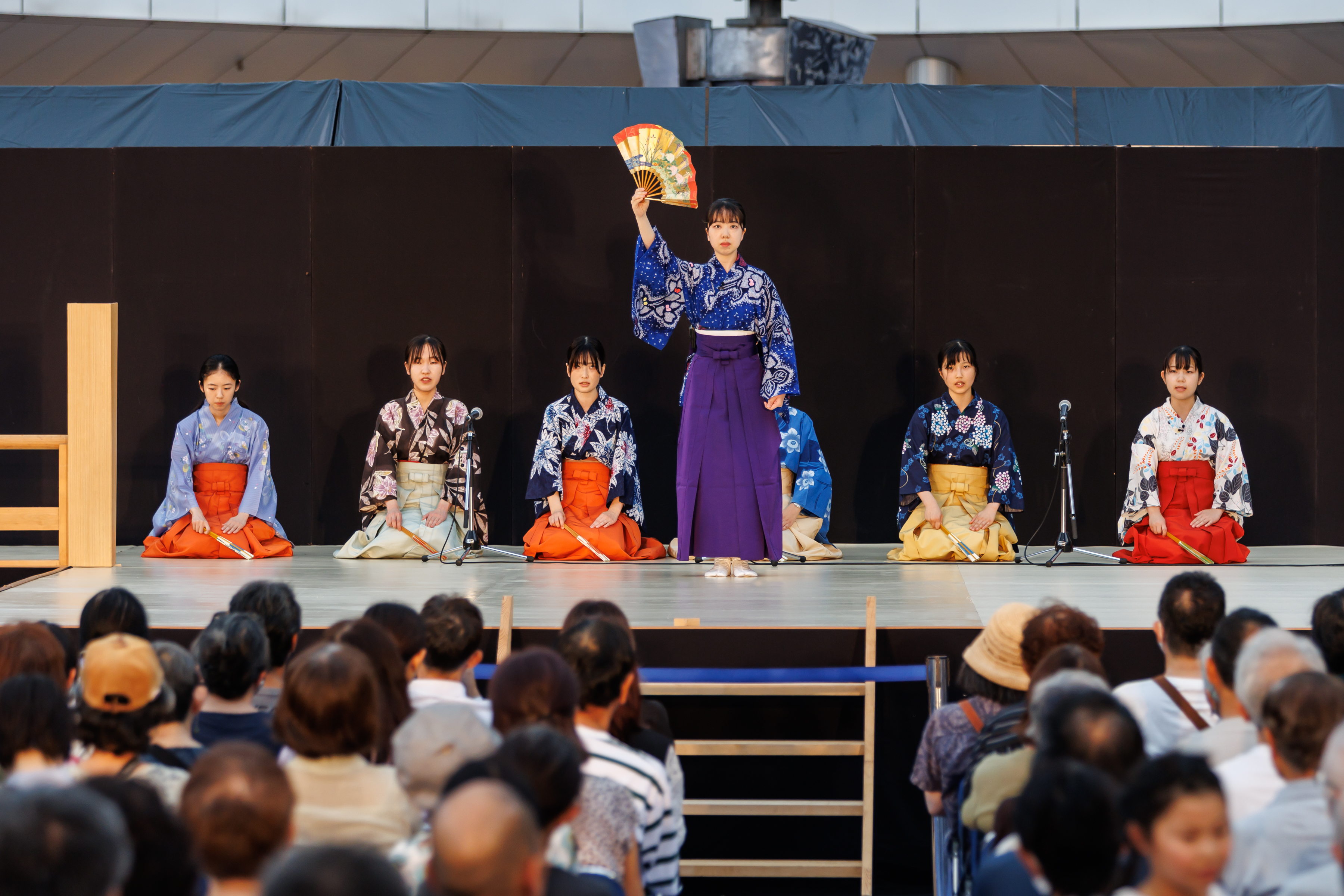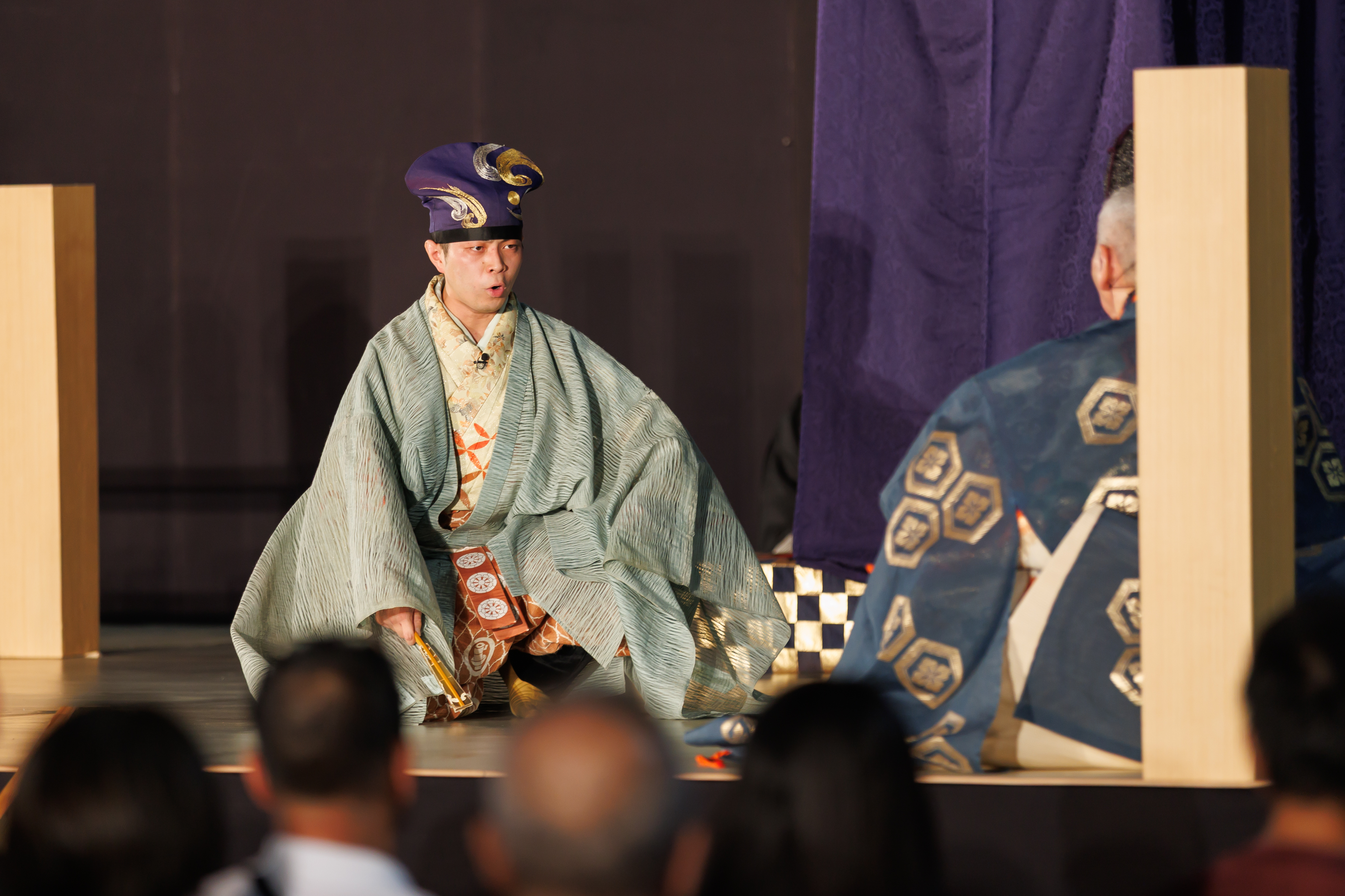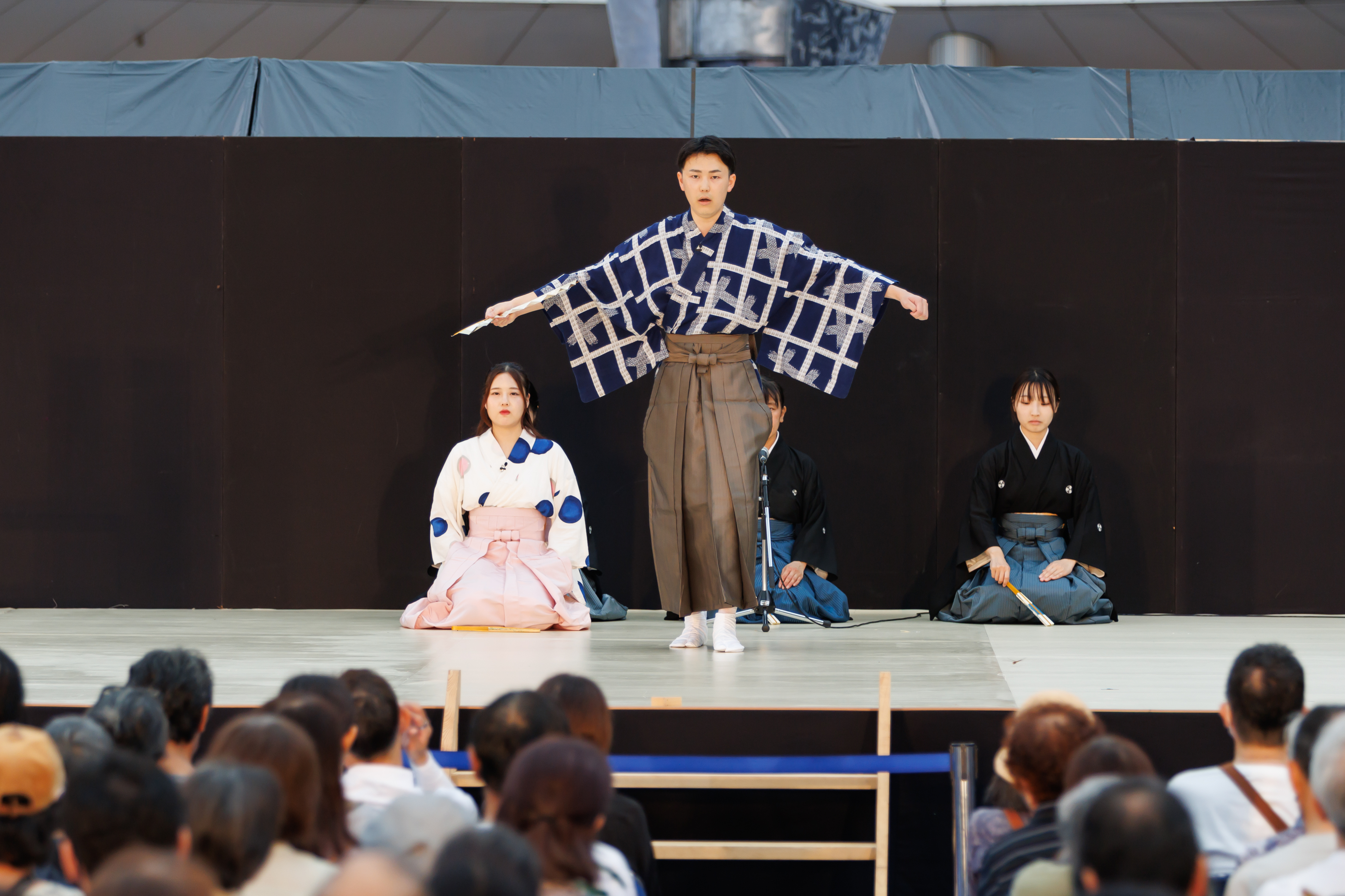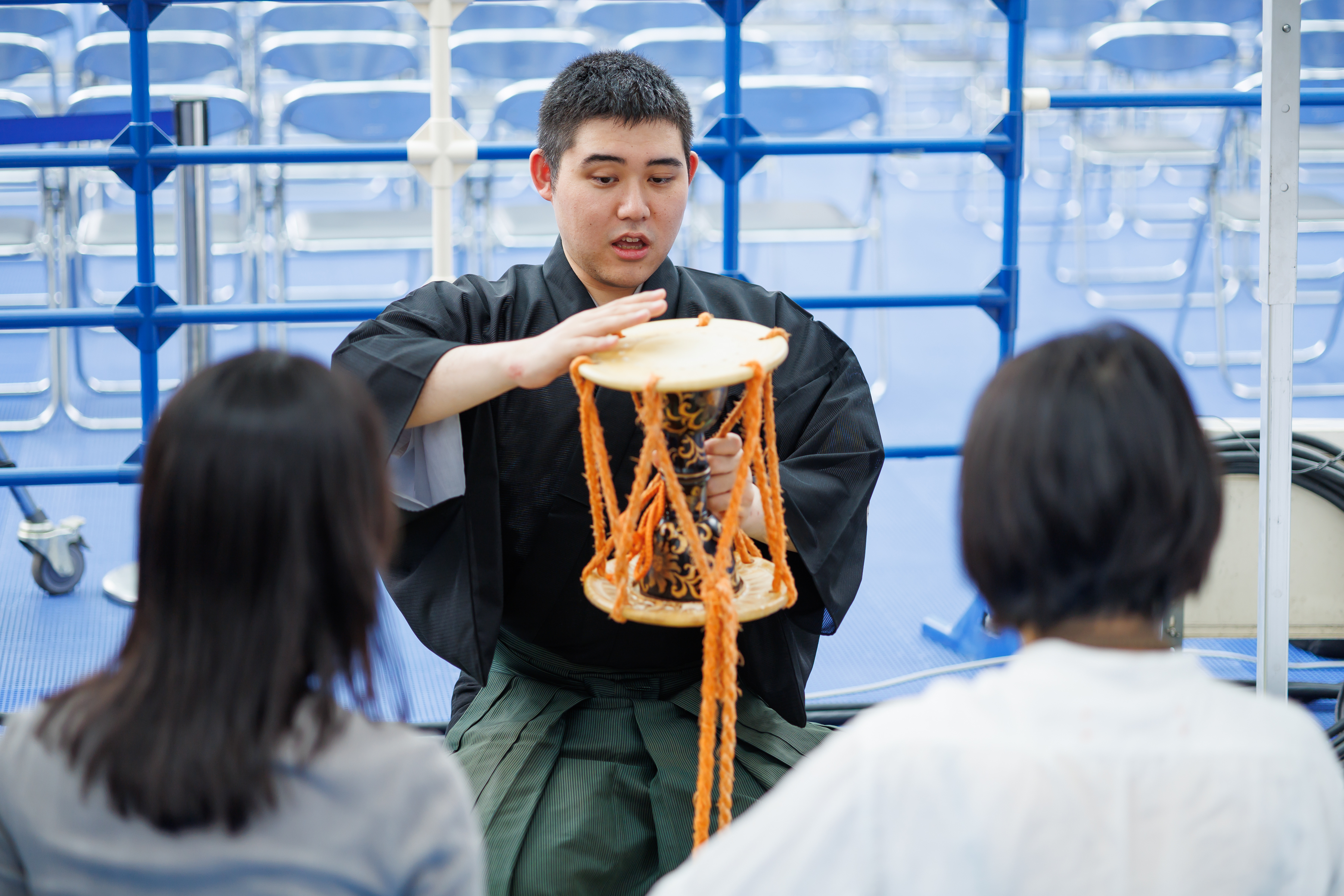 日頃能楽を学んでいる子どもたちや若手が出演する、発表ステージを実施しました。全10組・50名が集まり、袴狂言、謡、仕舞、太鼓と日頃の稽古の成果を存分に発揮しました!