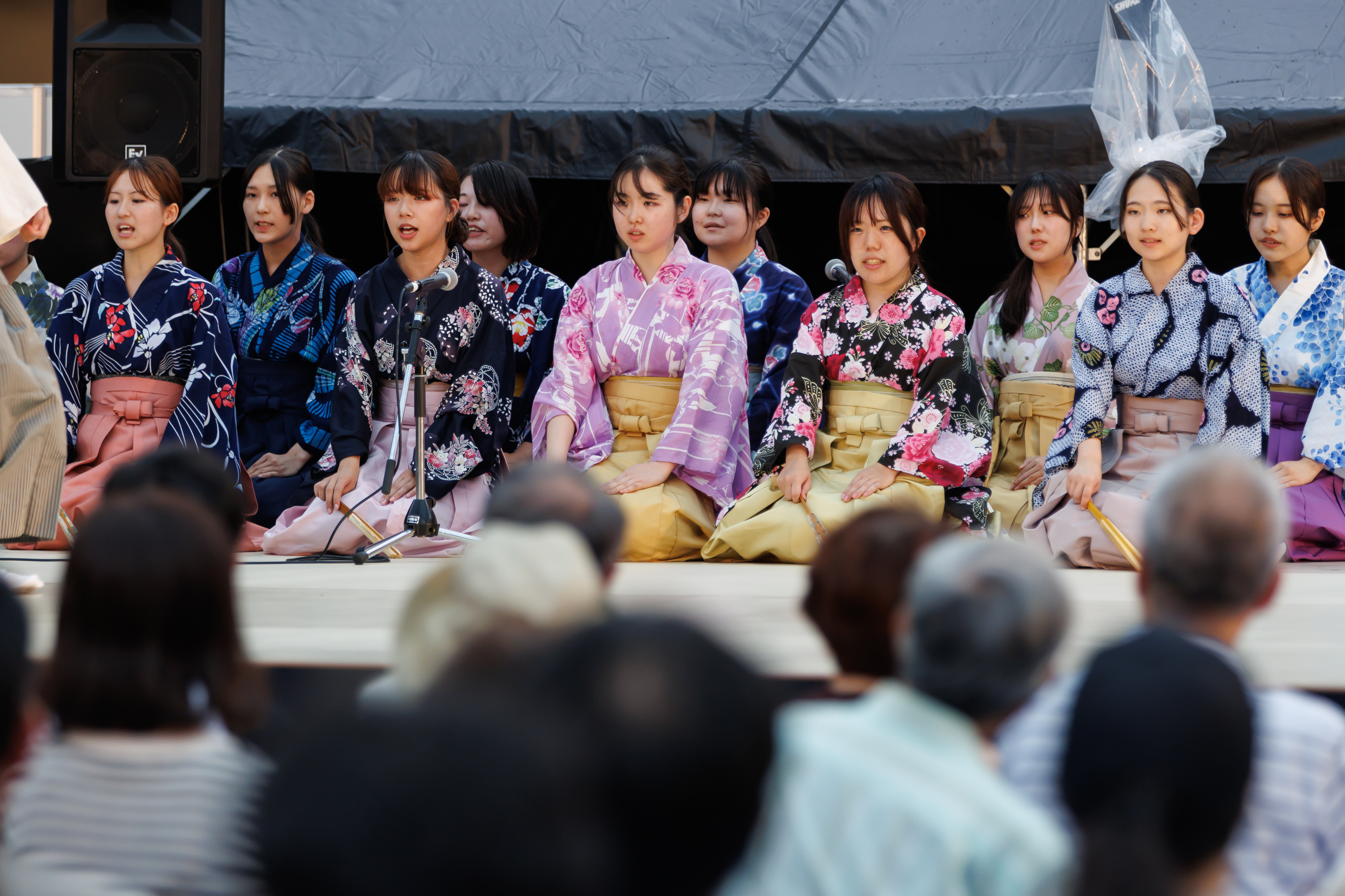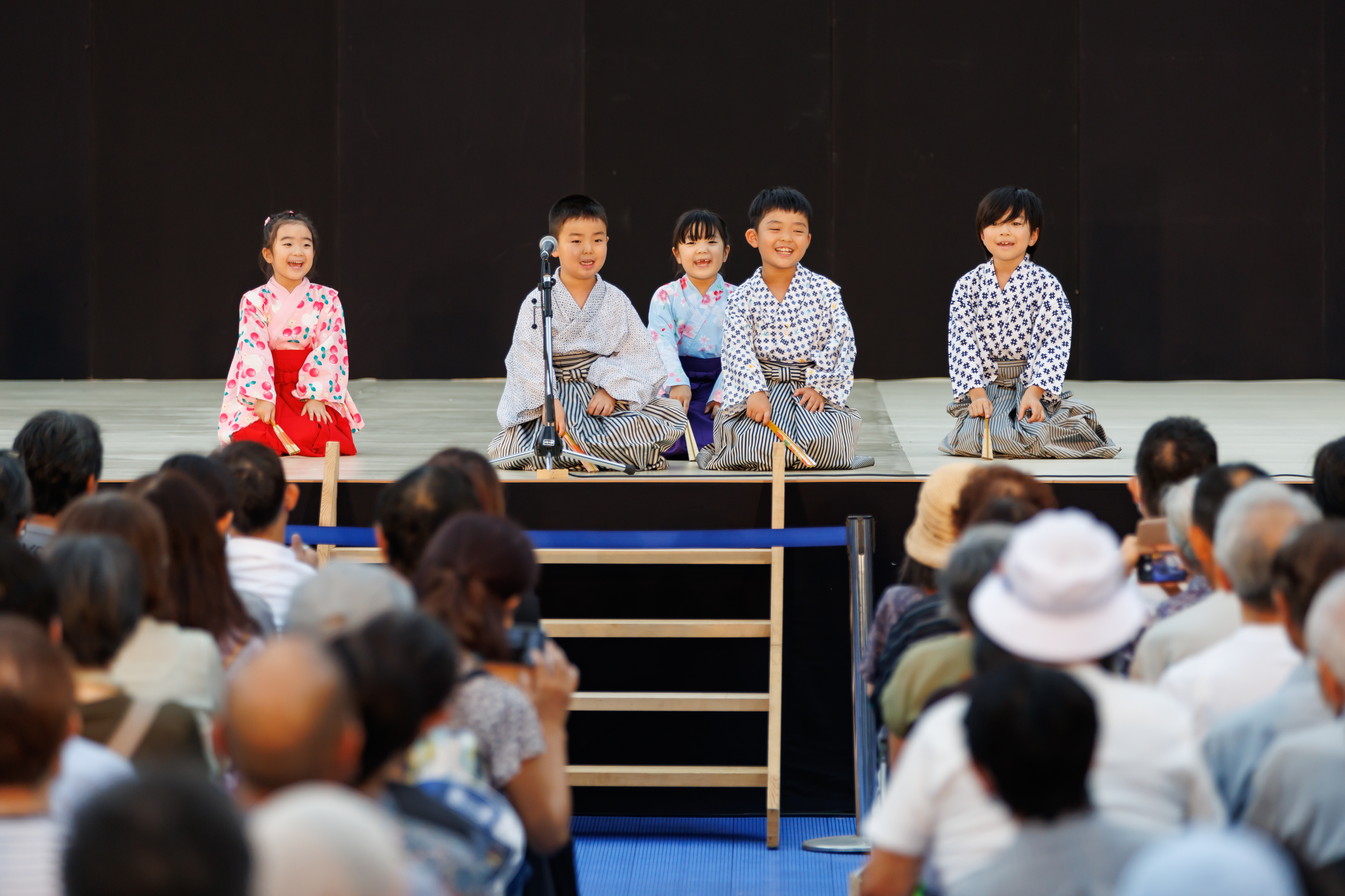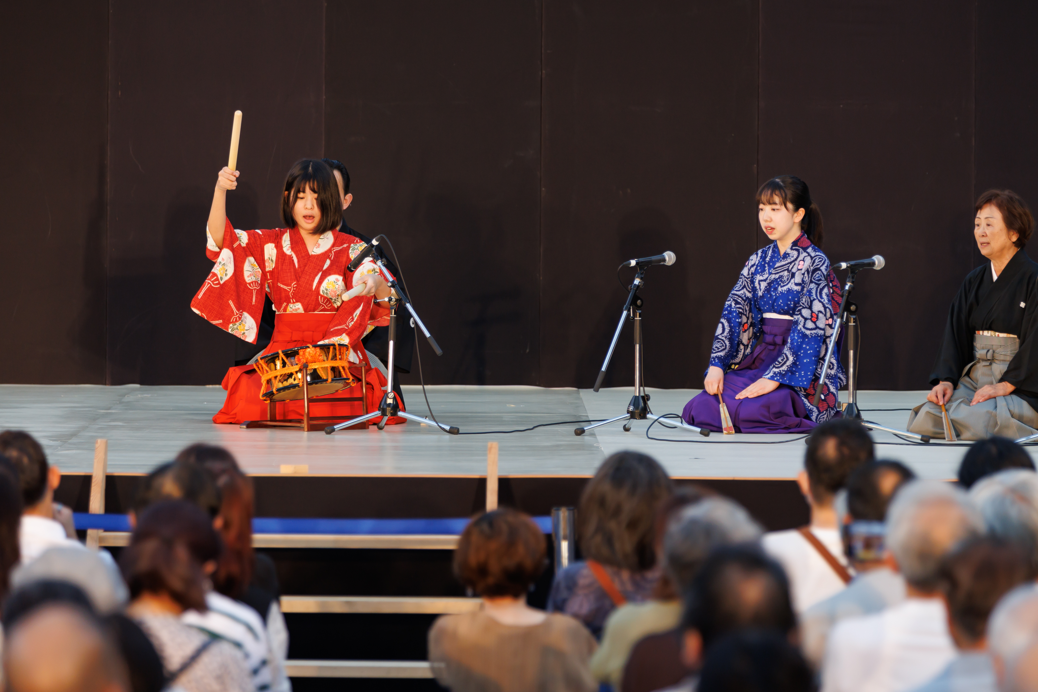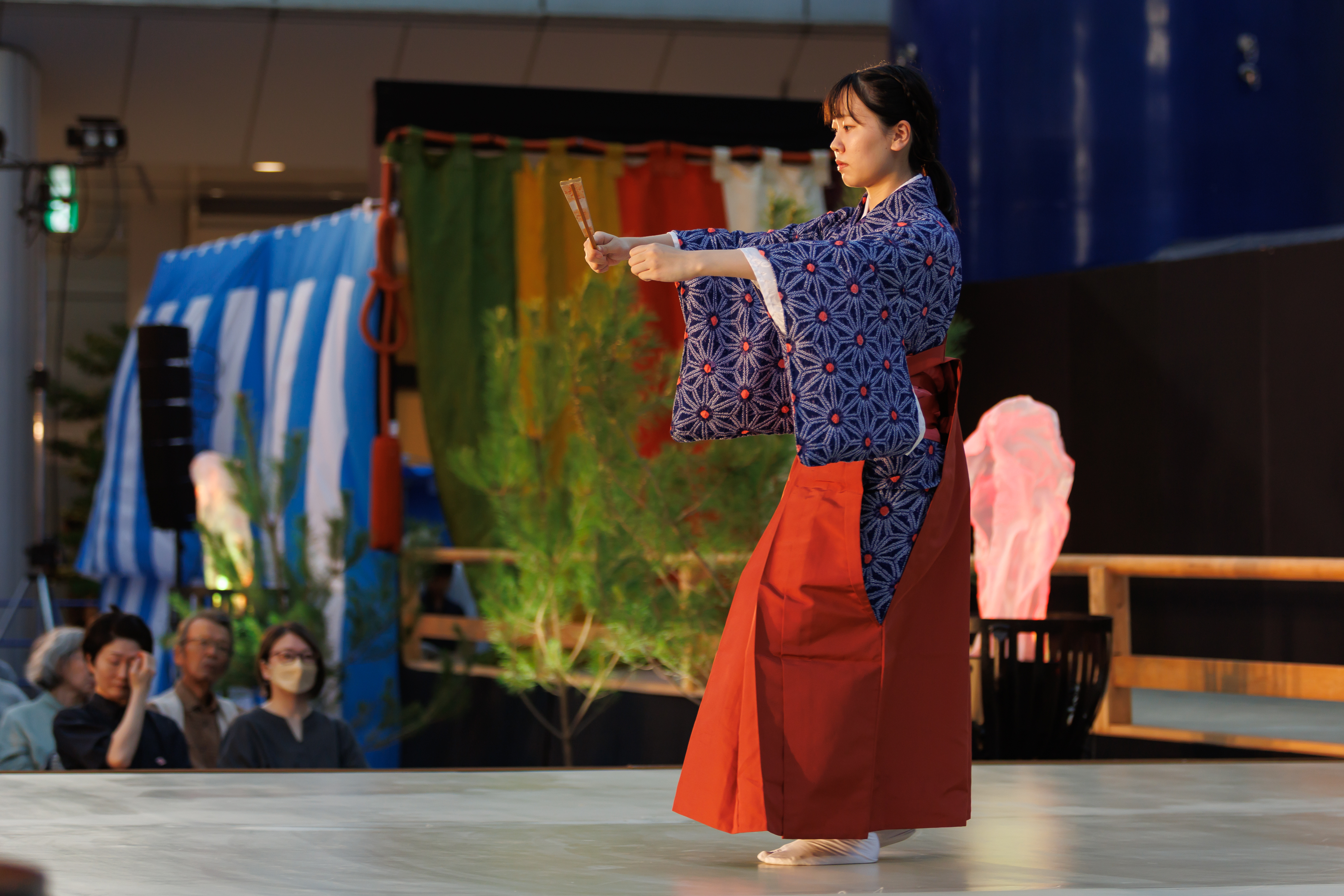 日頃能楽を学んでいる子どもたちや若手が出演する、発表ステージを実施しました。全10組・50名が集まり、袴狂言、謡、仕舞、太鼓と日頃の稽古の成果を存分に発揮しました!