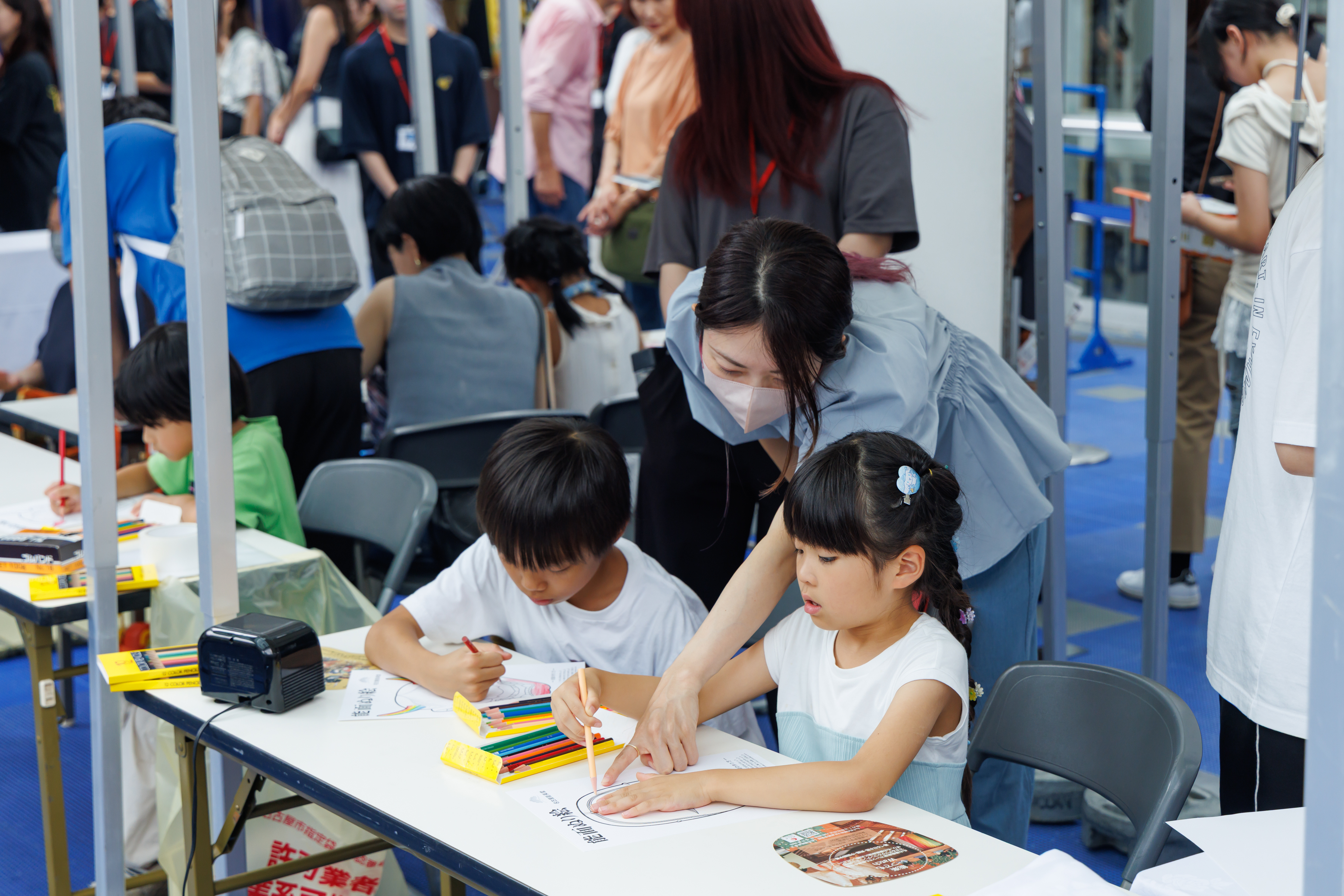 その他にもお子様も楽しめる能面塗り絵コーナーのほか、能楽堂PRブースも設置し、ご来場の皆様に名古屋能楽堂を紹介しました。