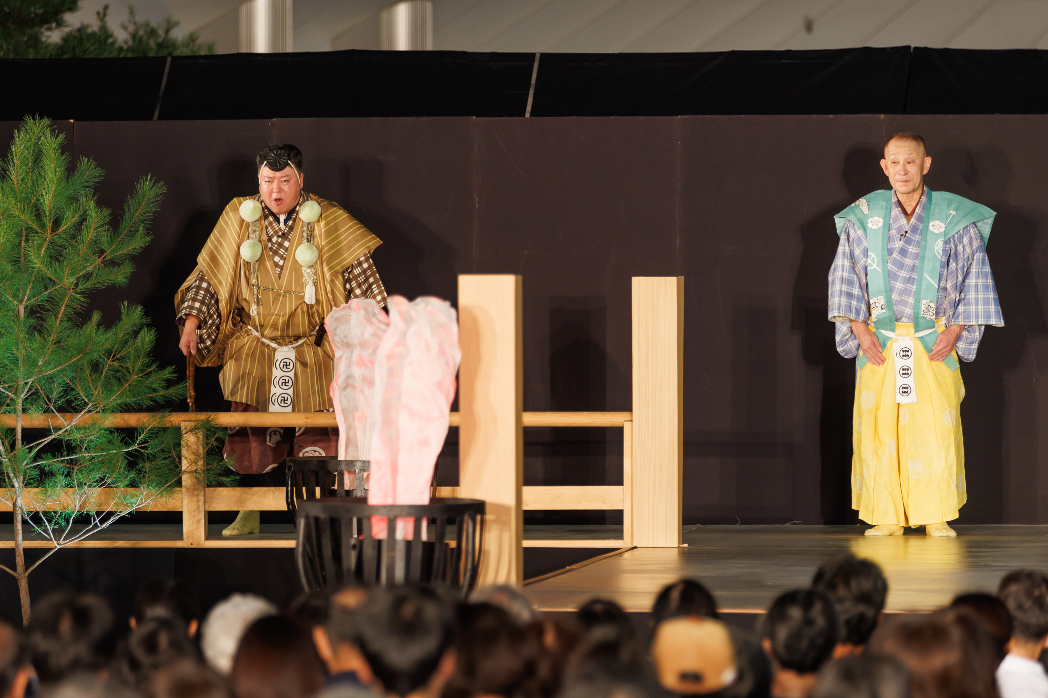 狼狽する山伏や奇声を発する弟の様子が笑いを誘う狂言「梟山伏」と、観光地としても有名な、琵琶湖に浮かぶ竹生島が舞台の能「竹生島」という、初めての方にも分かりやすい演目を上演しました!