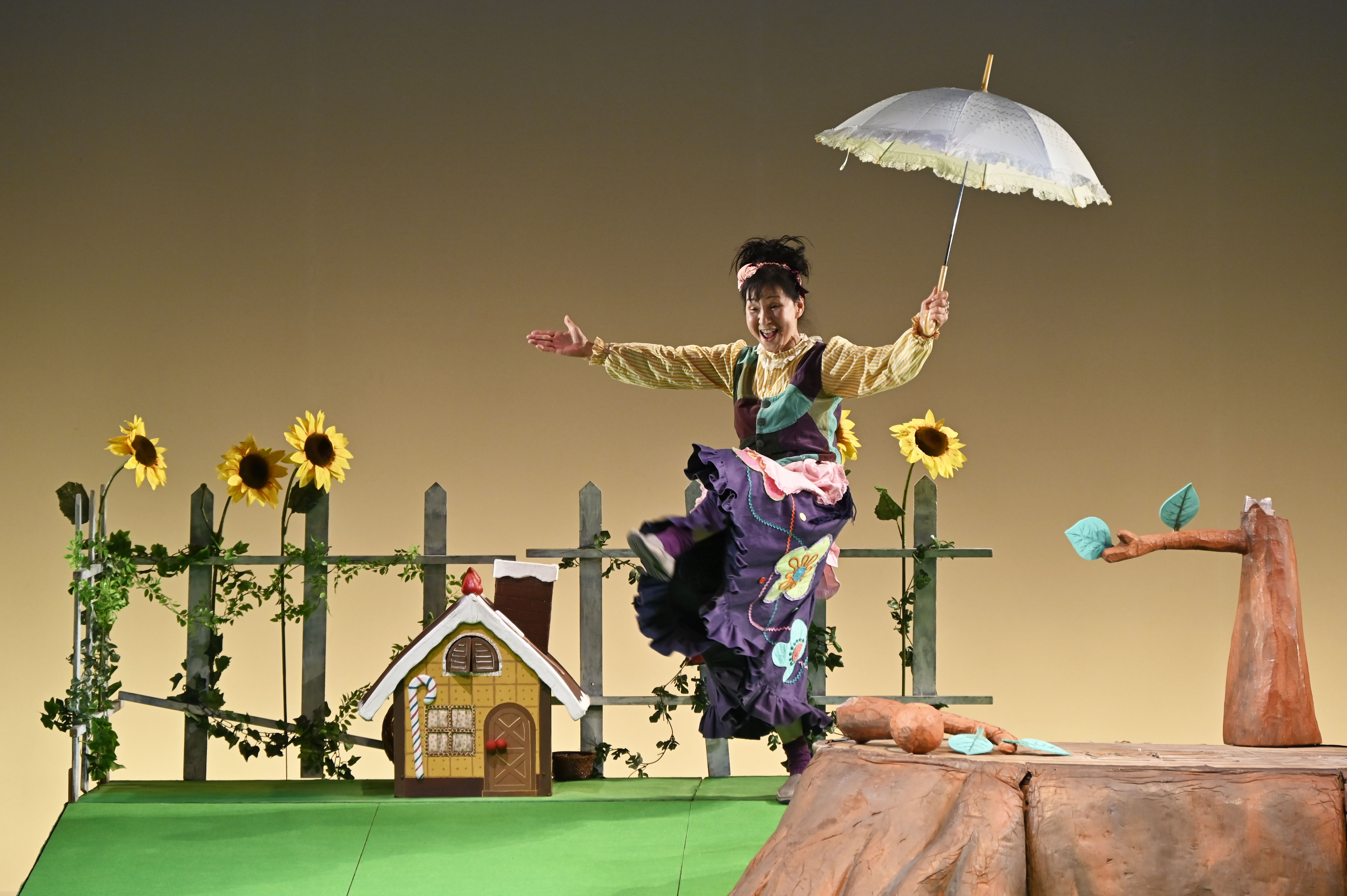 南の丘に住む、ヘンテコリンな魔女のおばさんの家で起こる不思議なお話。コミカルなお芝居を通して、子どもたちに、自分の気もちに素直になることの大切さを伝えました。