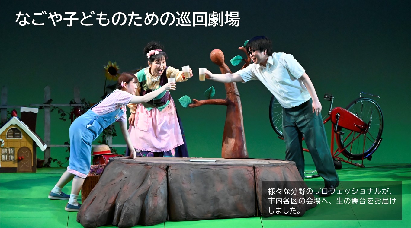 なごや子どものための巡回劇場は、子どもたちに、劇場で鑑賞することでしか味わえない感動を伝えたいと1980年に始まりました。できるだけ低料金で、子どもたちの住んでいるところになるべく近い場所を会場として、各区を巡回しています。