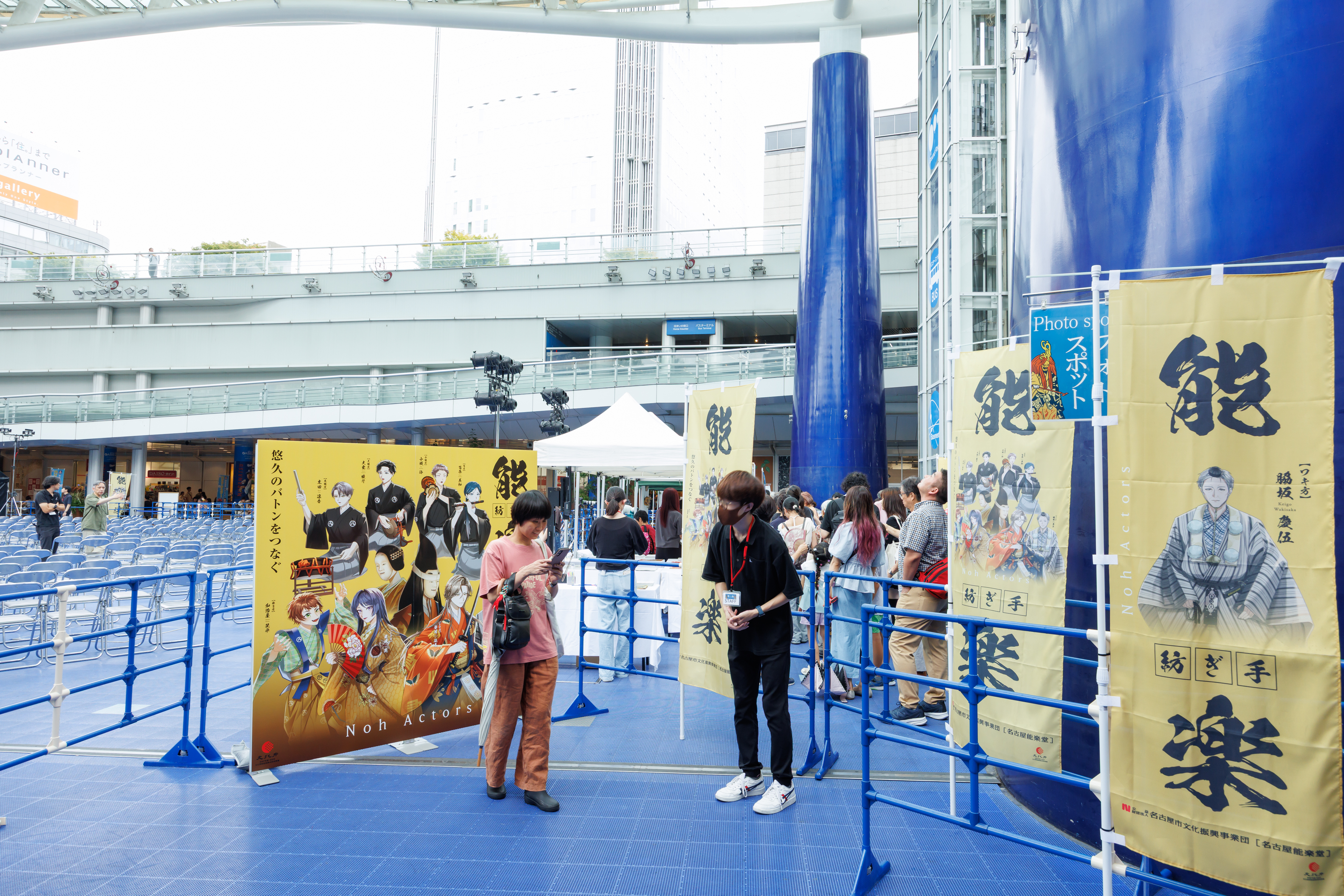 2025年9月13日(土)にオアシス21で開催された「NAGOYA NOH THEATER まちなかWatch」では、会場内にのぼりやパネルを設置し、ご来場者にうちわやクリアファイルを配布。「能楽 紡ぎ手」を広く知っていただくきっかけとしました。