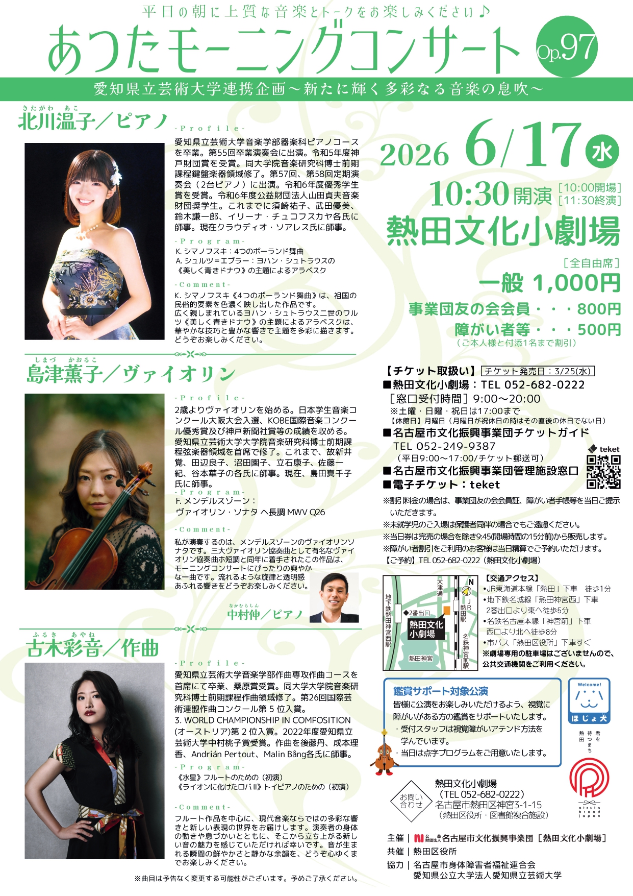 あつたモーニングコンサートOp.97 愛知県立芸術大学連携企画~新たに輝く多彩なる音楽の息吹~