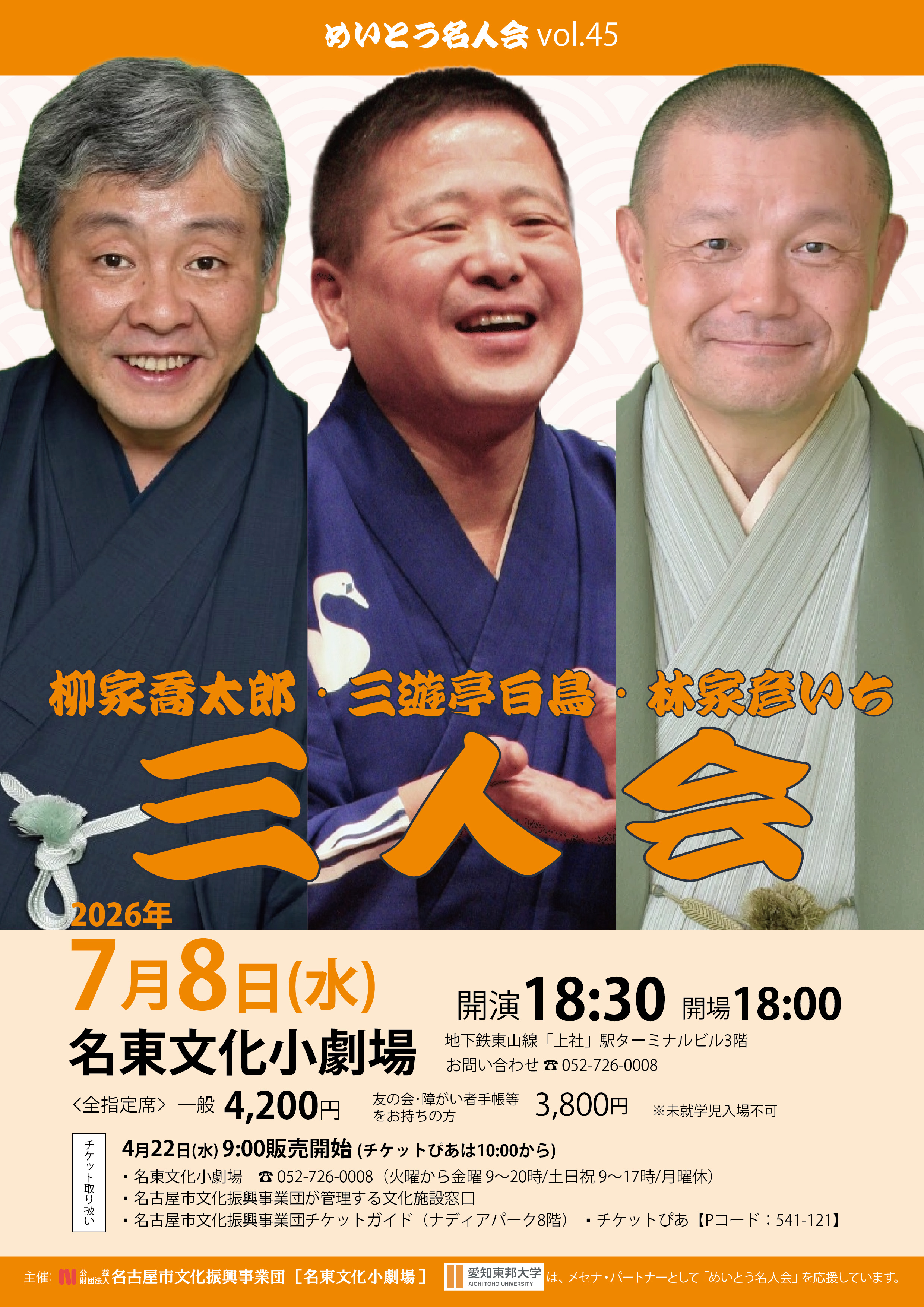 めいとう名人会 vol.45「柳家喬太郎・三遊亭白鳥・林家彦いち 三人会」