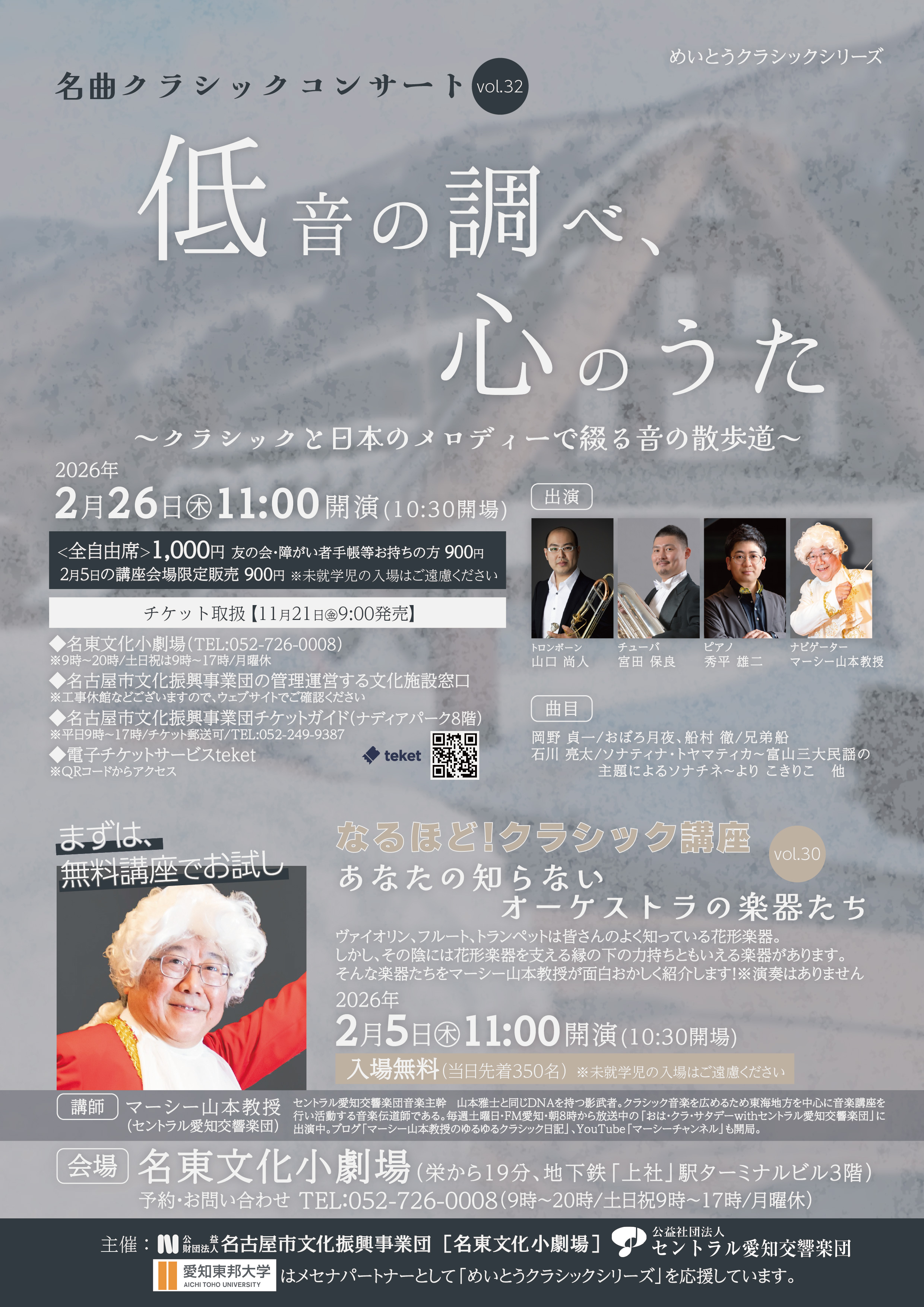 名曲クラシックコンサートvol.32「低音のしらべ、心のうた~クラシックと日本のメロディーで綴る音の散歩道~」