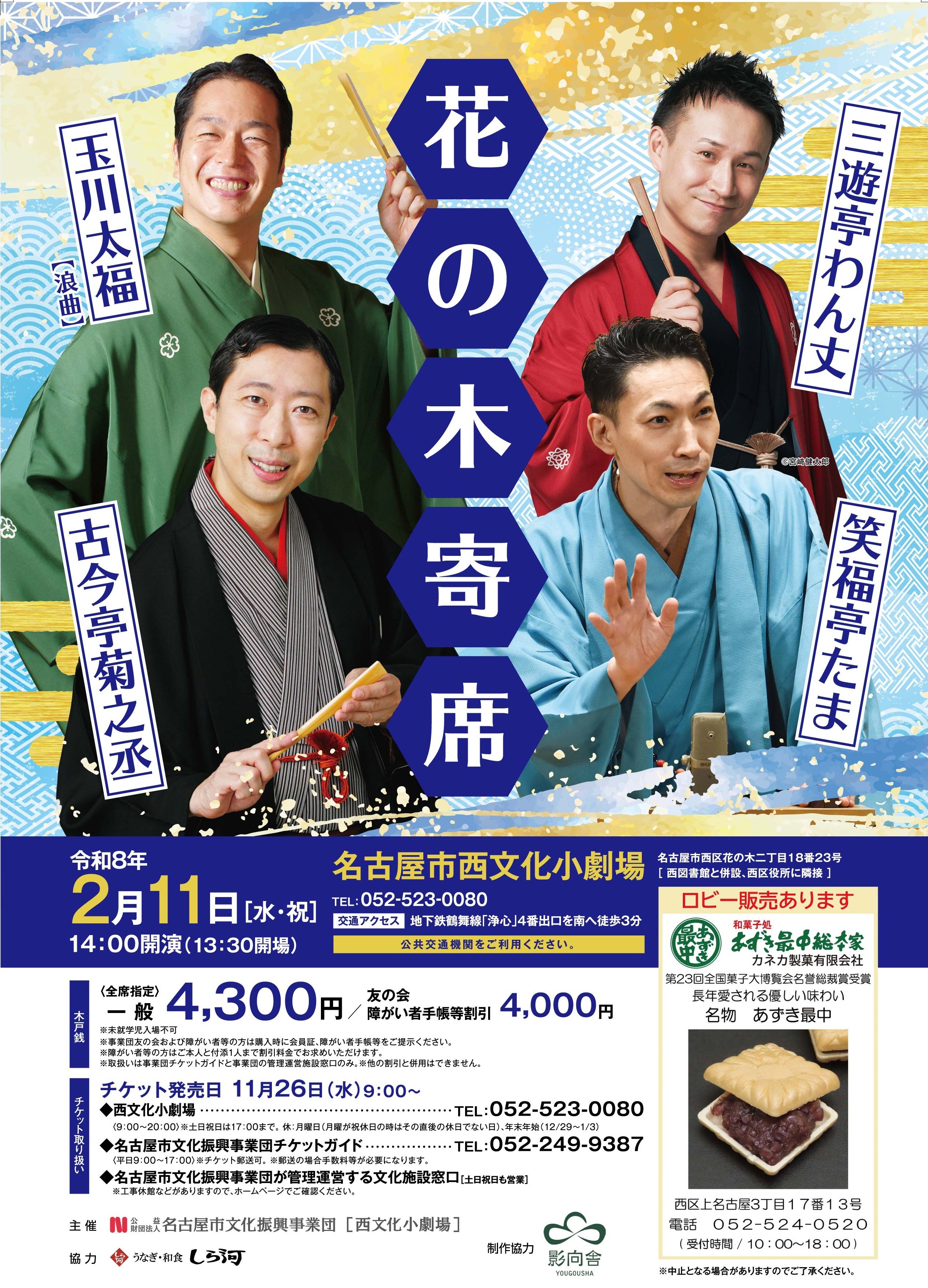 花の木寄席 古今亭菊之丞・笑福亭たま・三遊亭わん丈・玉川大福【浪曲】
