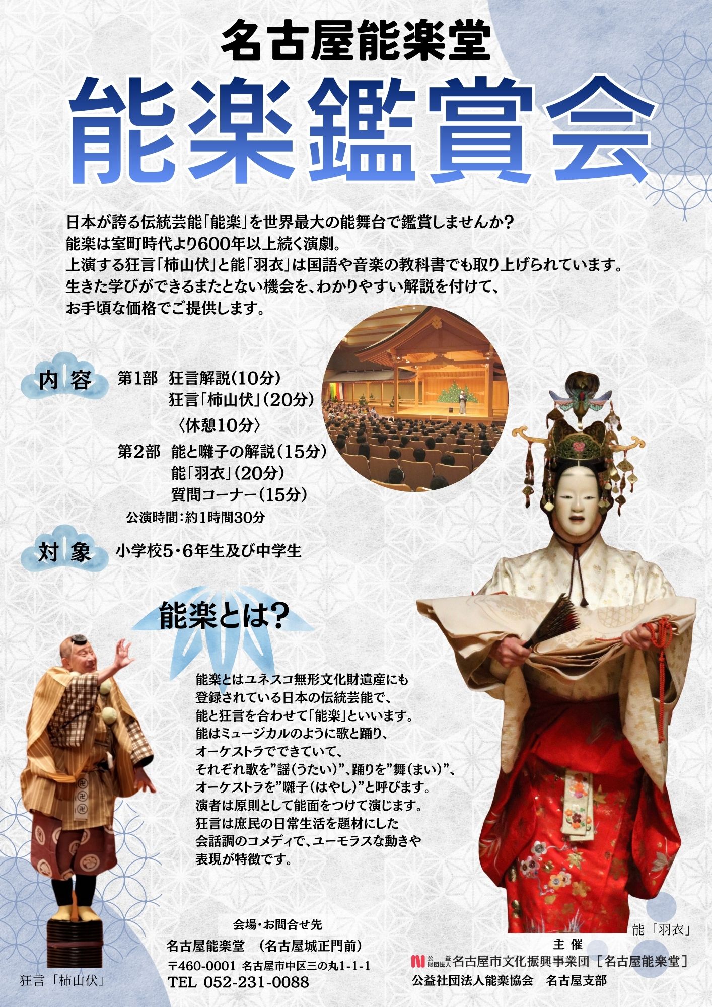 令和8年度 名古屋能楽堂 小中学生芸術鑑賞会(後期) 狂言「柿山伏」/能 「羽衣」(解説付)