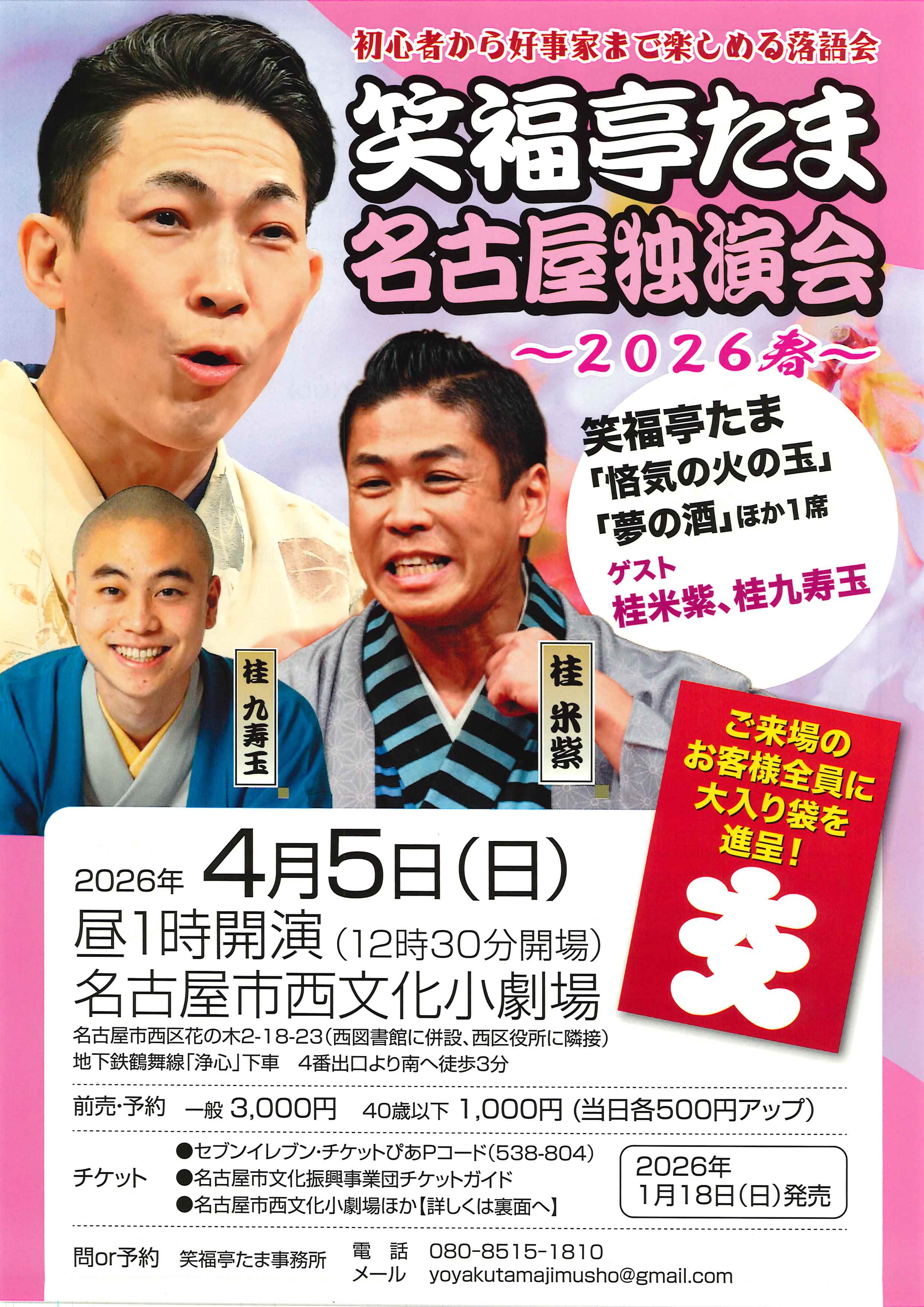 | 問合せ | 笑福亭たま事務所 TEL 080-8515-1810 |