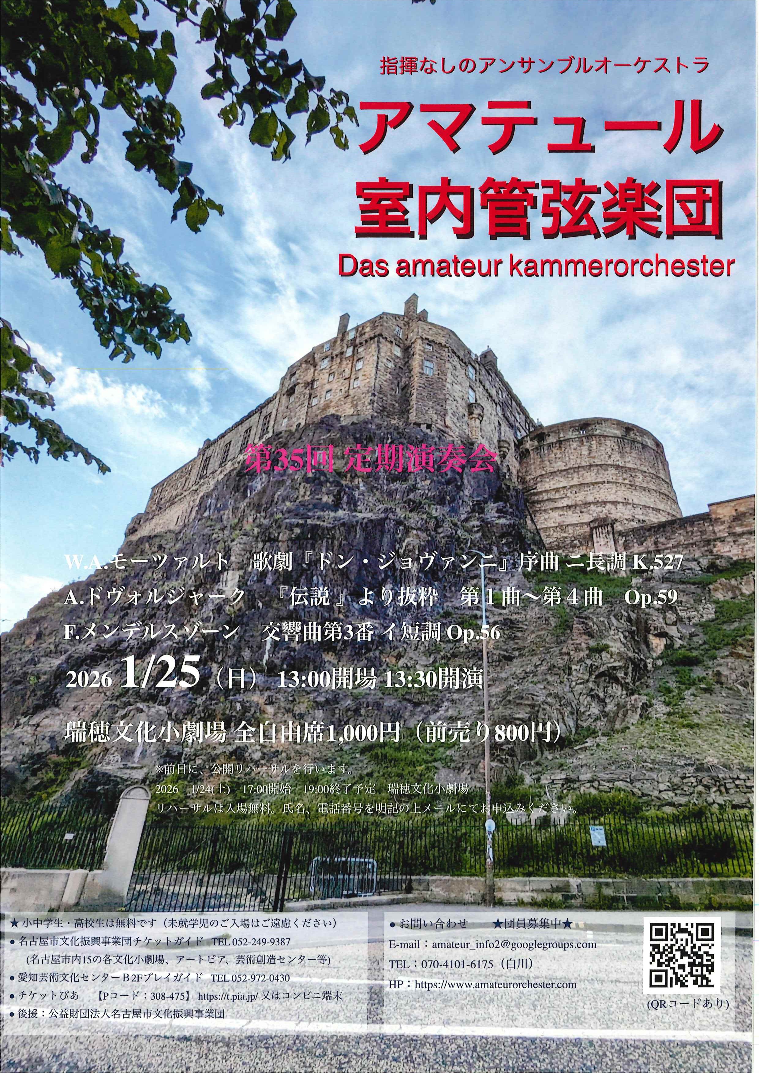 | 問合せ | アマテュール室内管弦楽団 E-mail:amateur_info2(at)googlegroups.com |