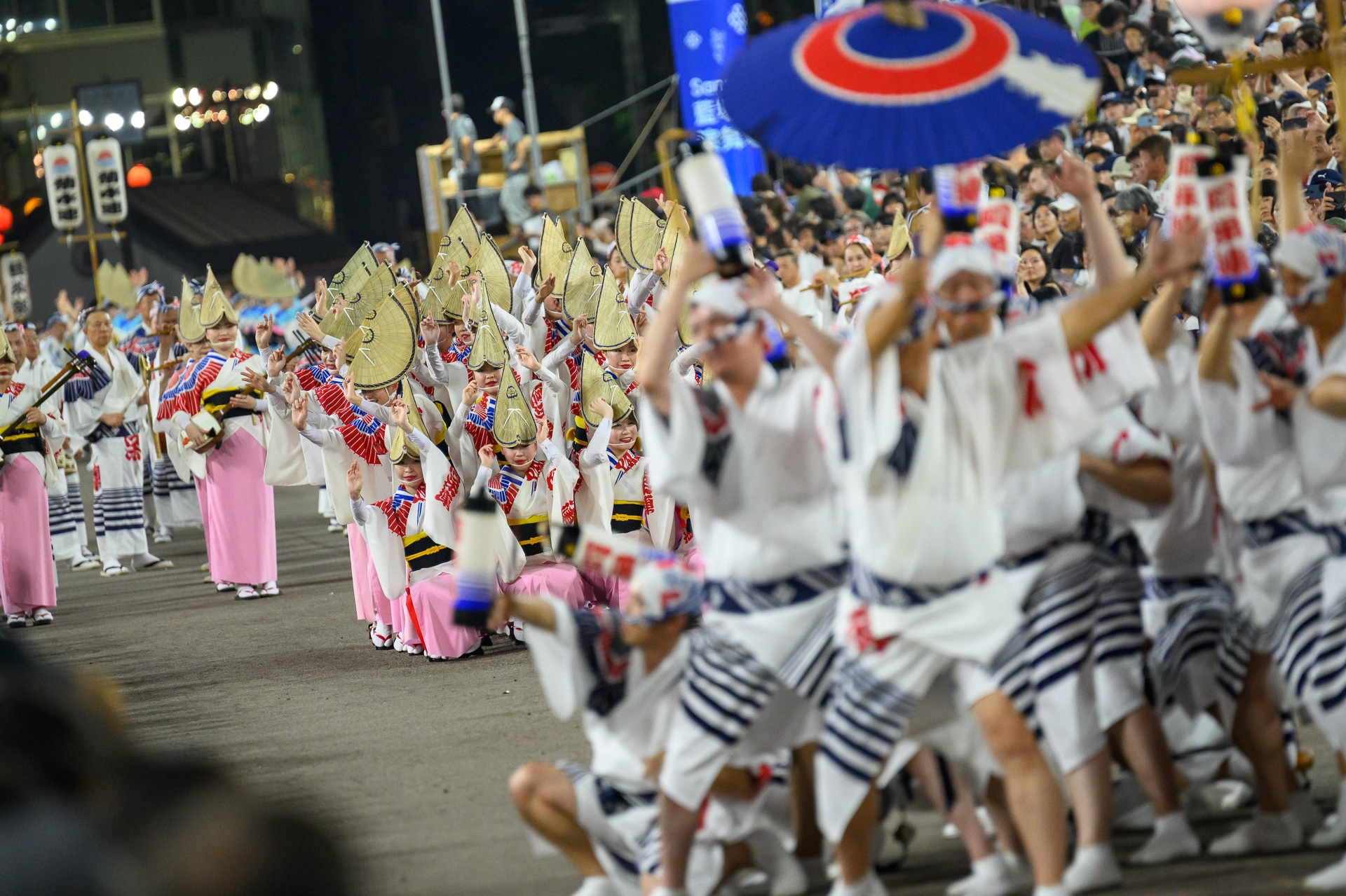 肩に染め抜かれた“破れ傘”のデザインは結成当時と変わらず、先人たちが築き上げ引き継いできた阿呆連のシンボルとなっている。