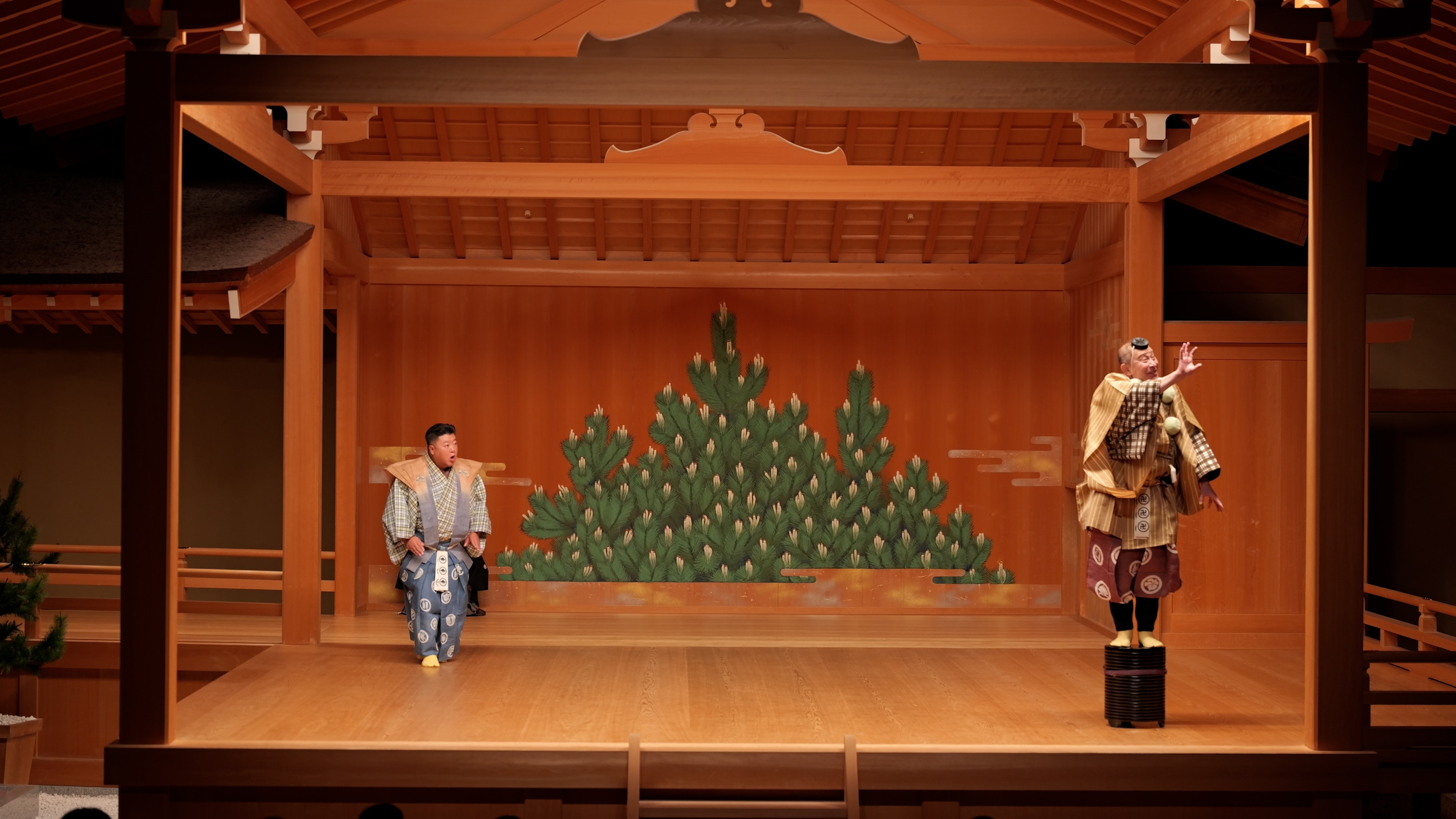第1部 狂言の解説(10分) 狂言「柿山伏」(20分) <休憩10分> 第2部 能と囃子の解説(15分) 能 「羽衣」(20分)