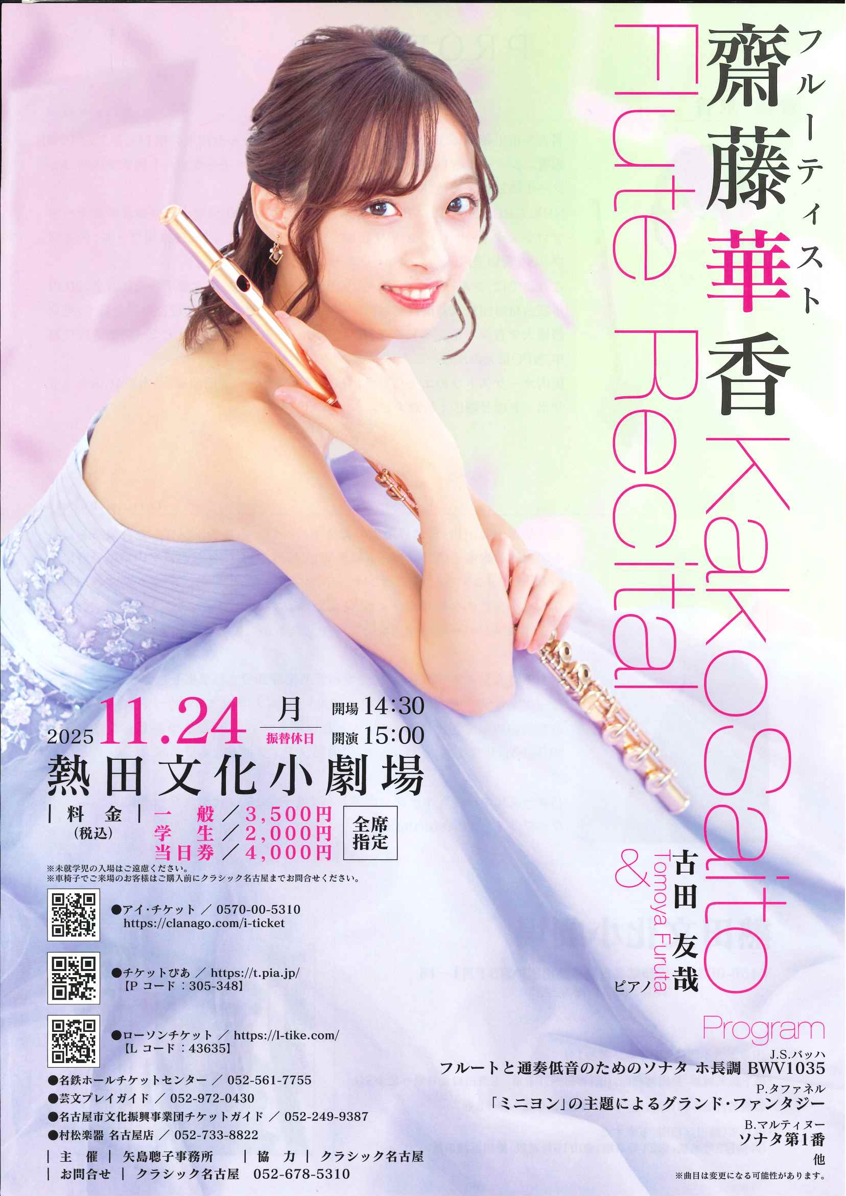 第39回名古屋演奏家育成塾 名古屋市文化振興事業団賞受賞記念 福田彩花フルートリサイタル