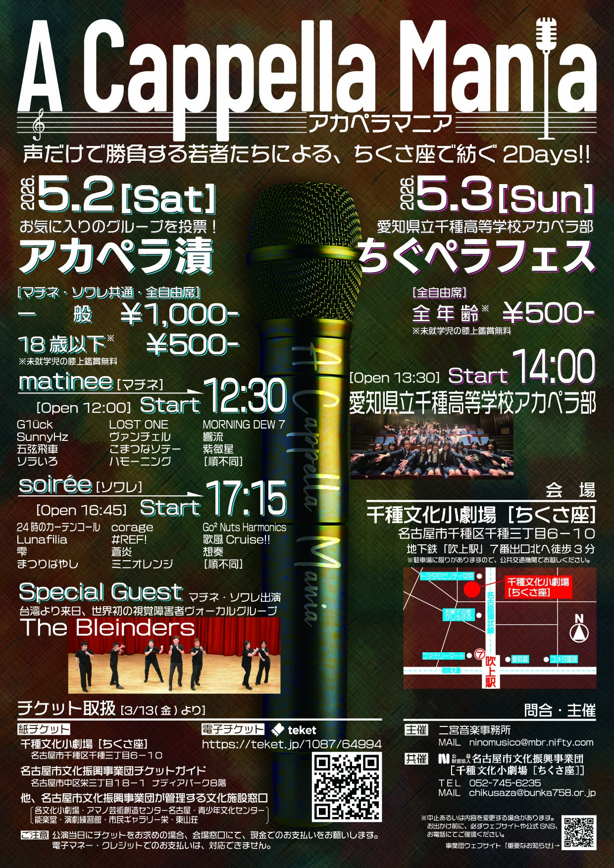 TEL 052-745-6235 FAX 052-745-6236 Mail chikusaza@bunka758.or.jp ※@マークを半角にしてメールをお送りください |