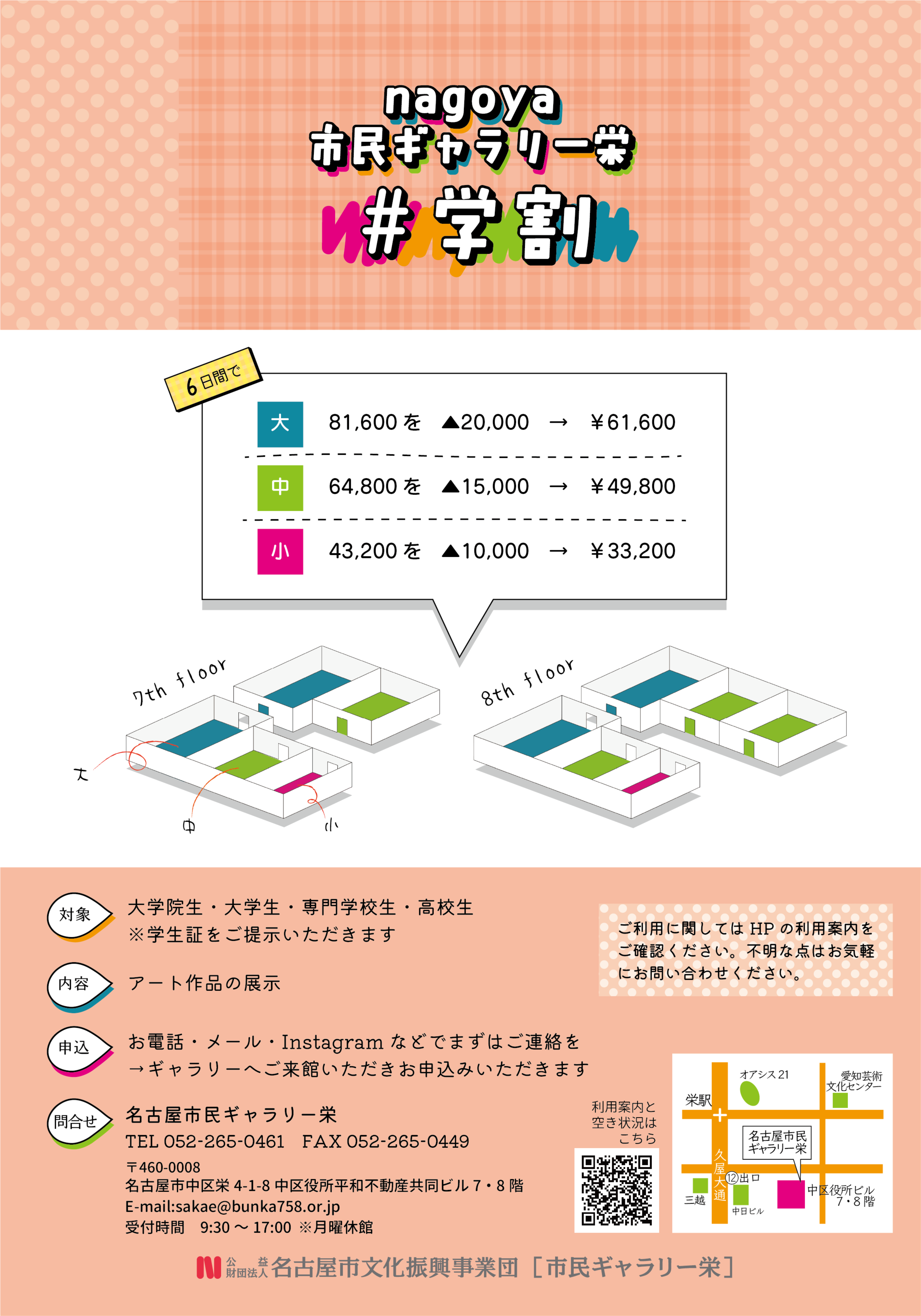 - 附属設備を使用する場合は、別途料金をいただきます。(彫塑台または展示ケース1台@200円/日)
