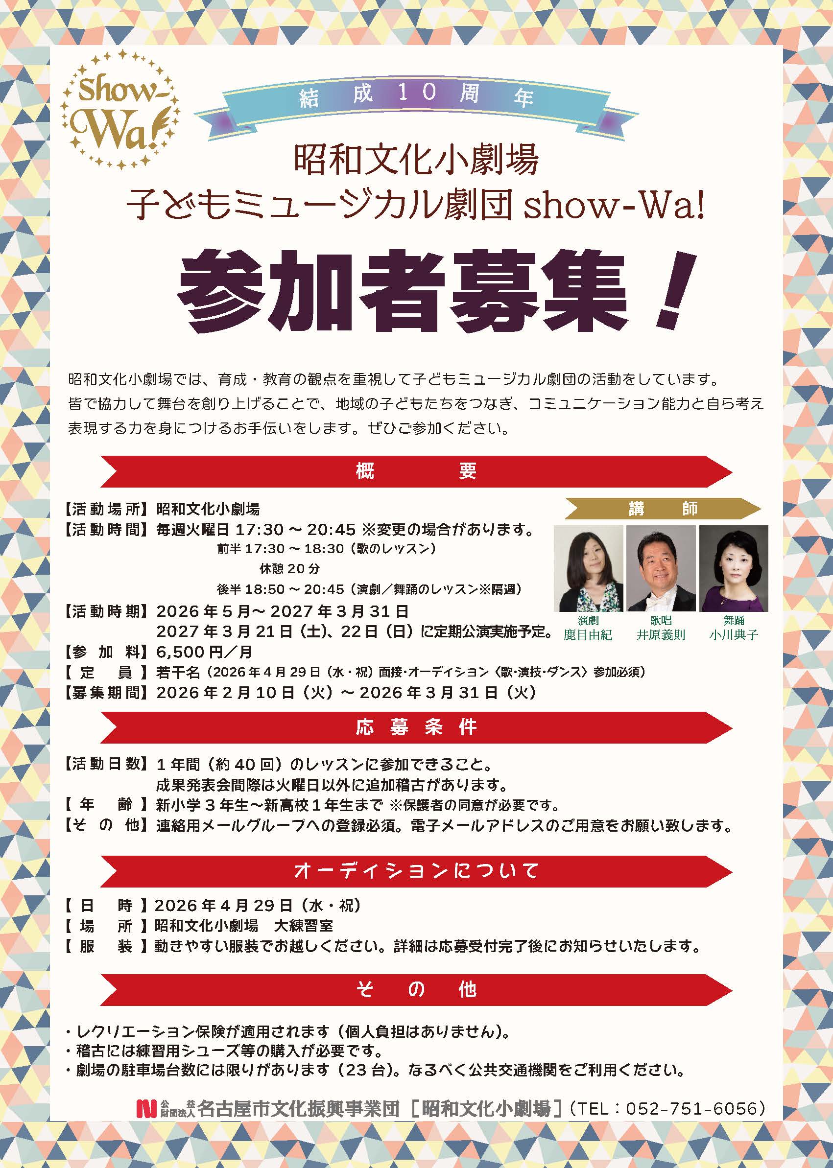 子どもミュージカル劇団「show-Wa!」参加者募集!