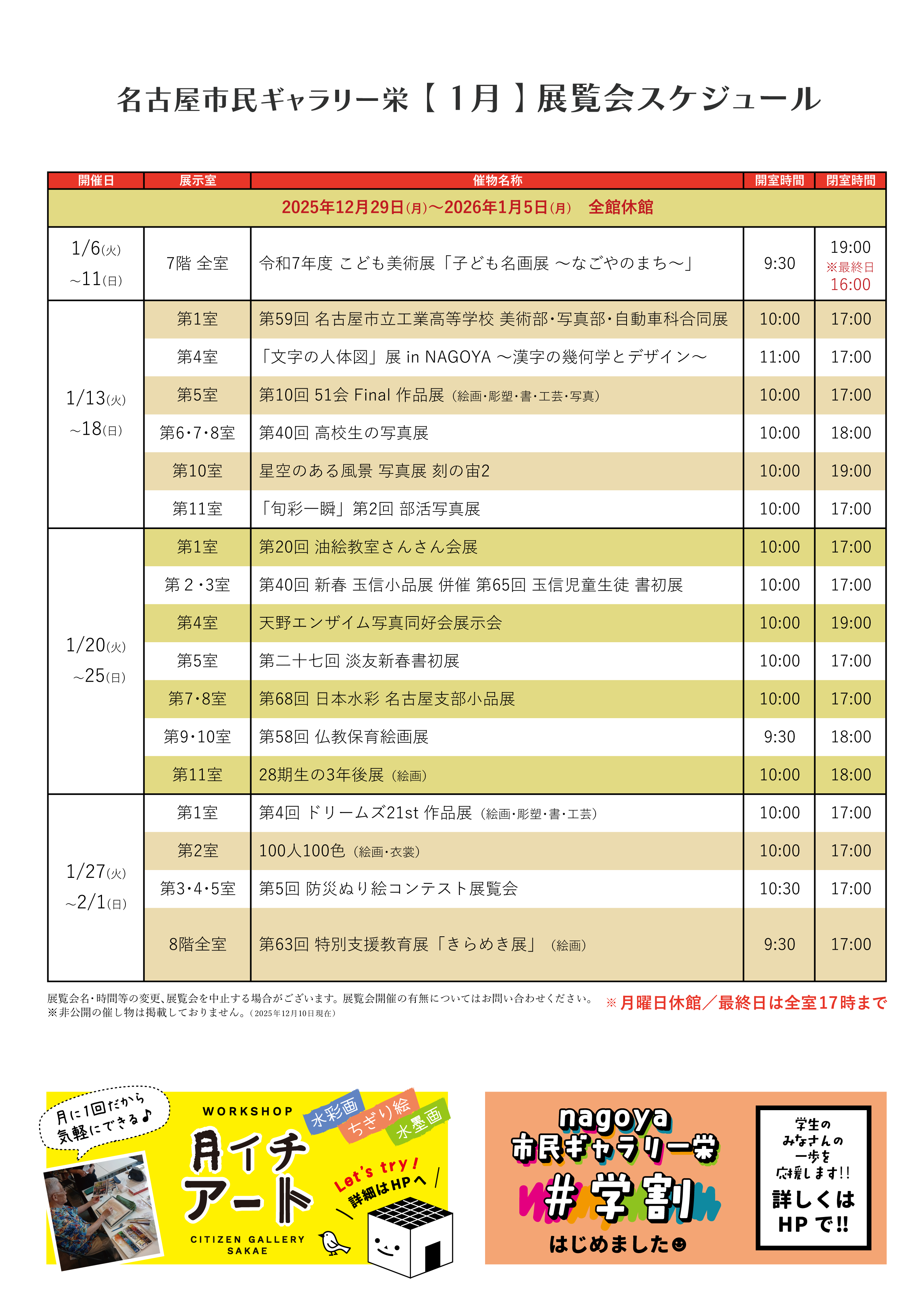 【市民ギャラリー栄】1月 展覧会スケジュール