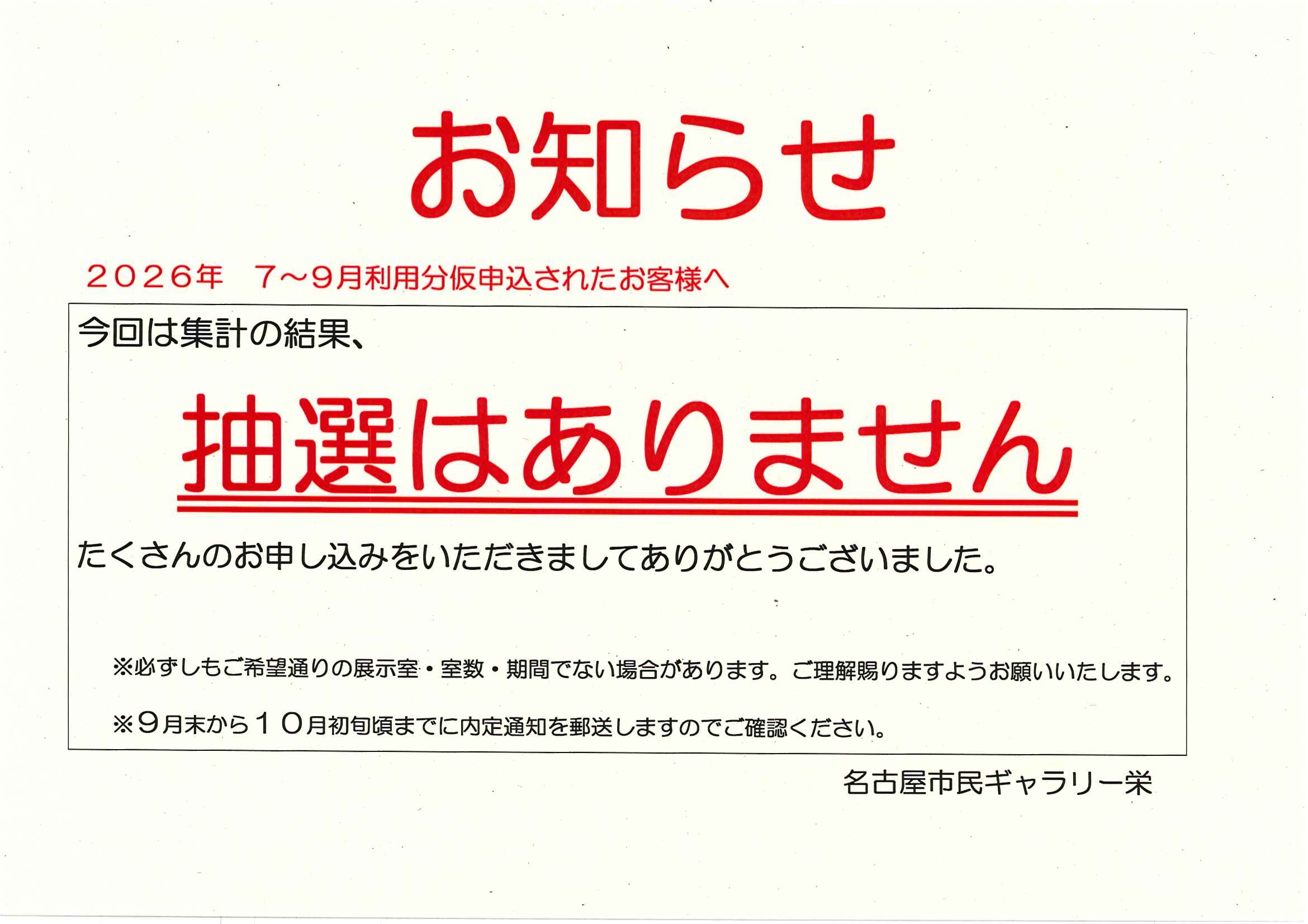 【市民ギャラリー栄】2026年(令和8年)7~9月利用分 ≪仮申込受付の結果について≫