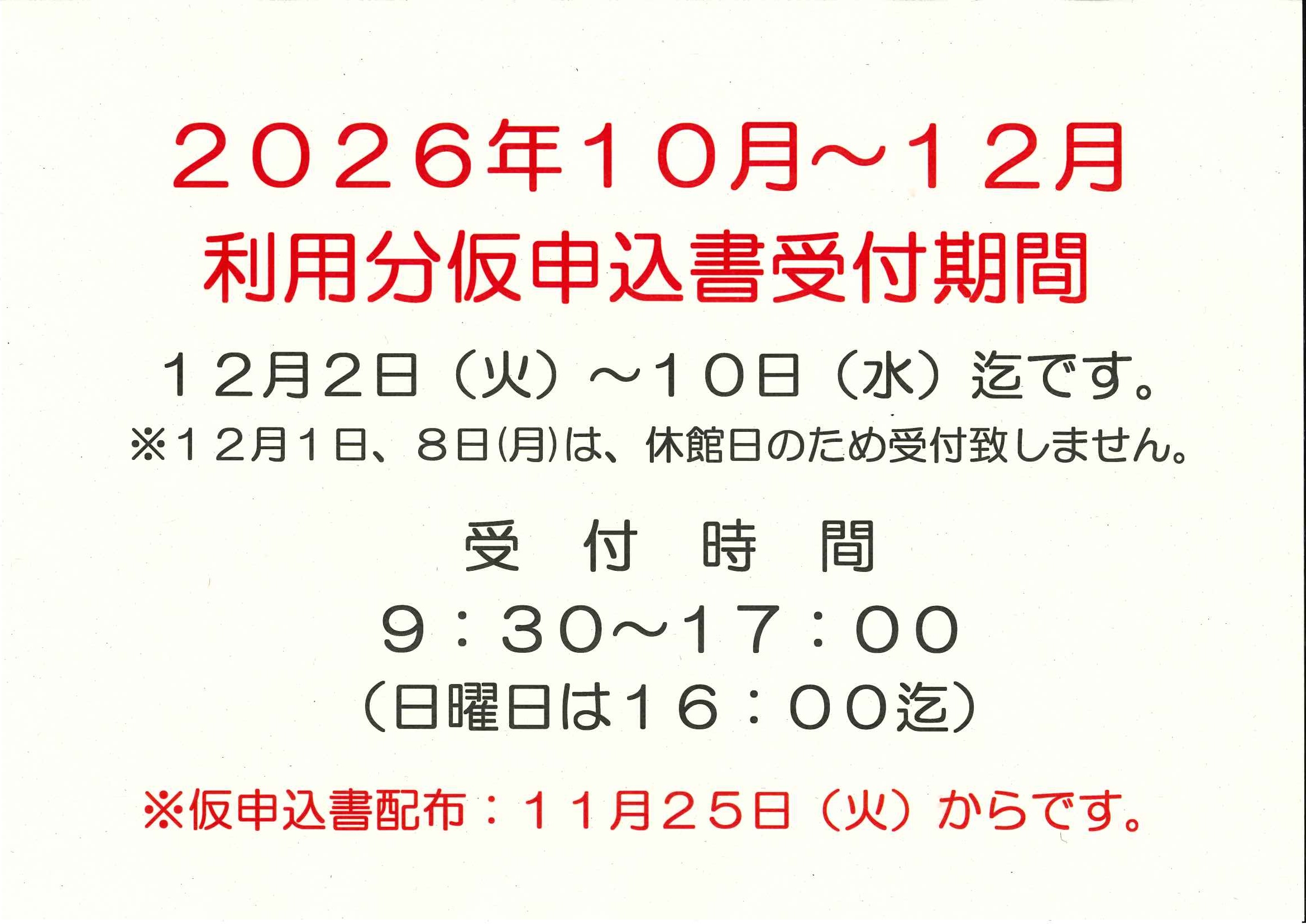 仮申込書は11月25日(火)から7階事務所窓口前で配布しております。ご自由にお持ちください。