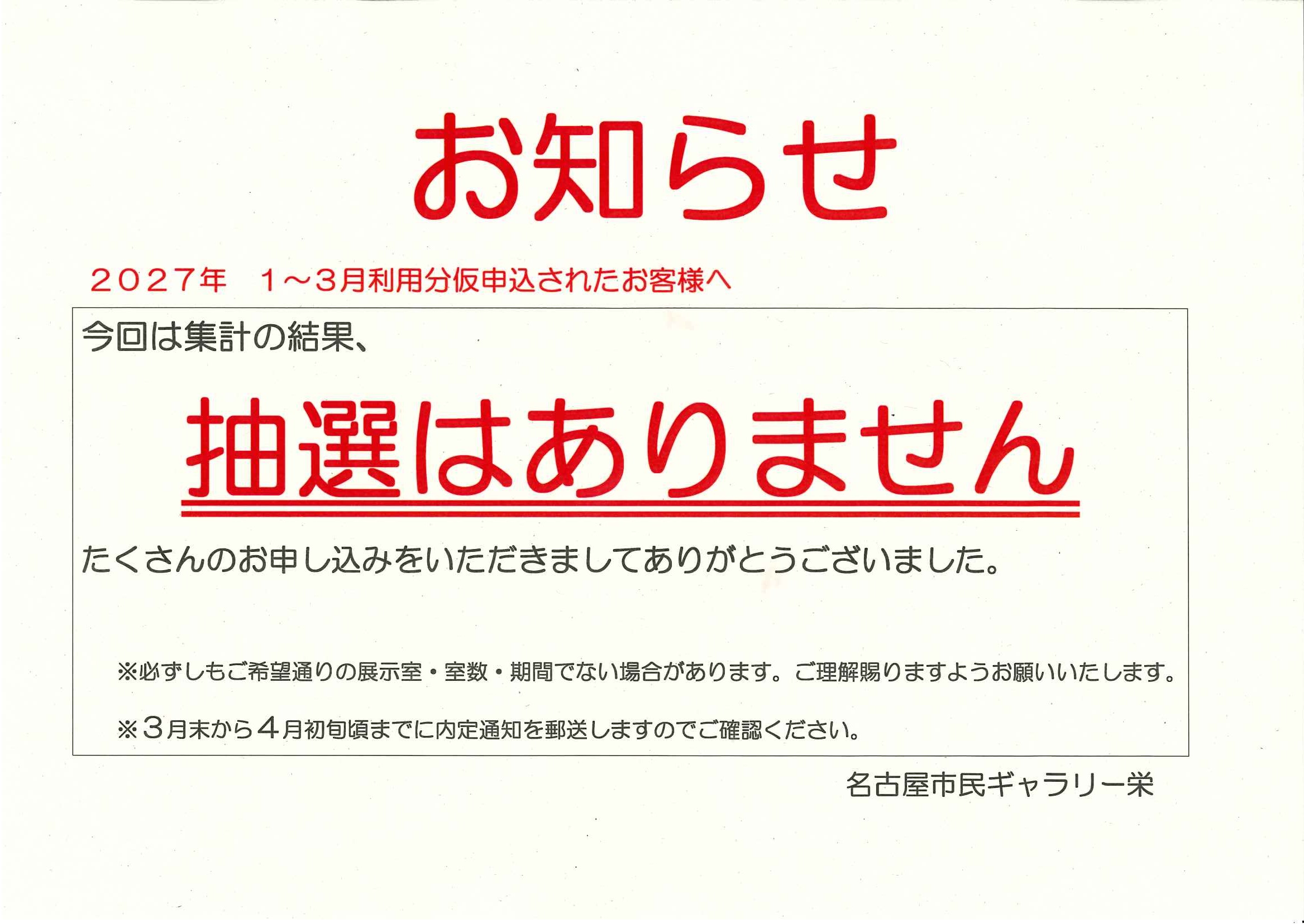 【市民ギャラリー栄】2027年(令和9年) 1月~3月利用分 ≪仮申込受付の結果について≫