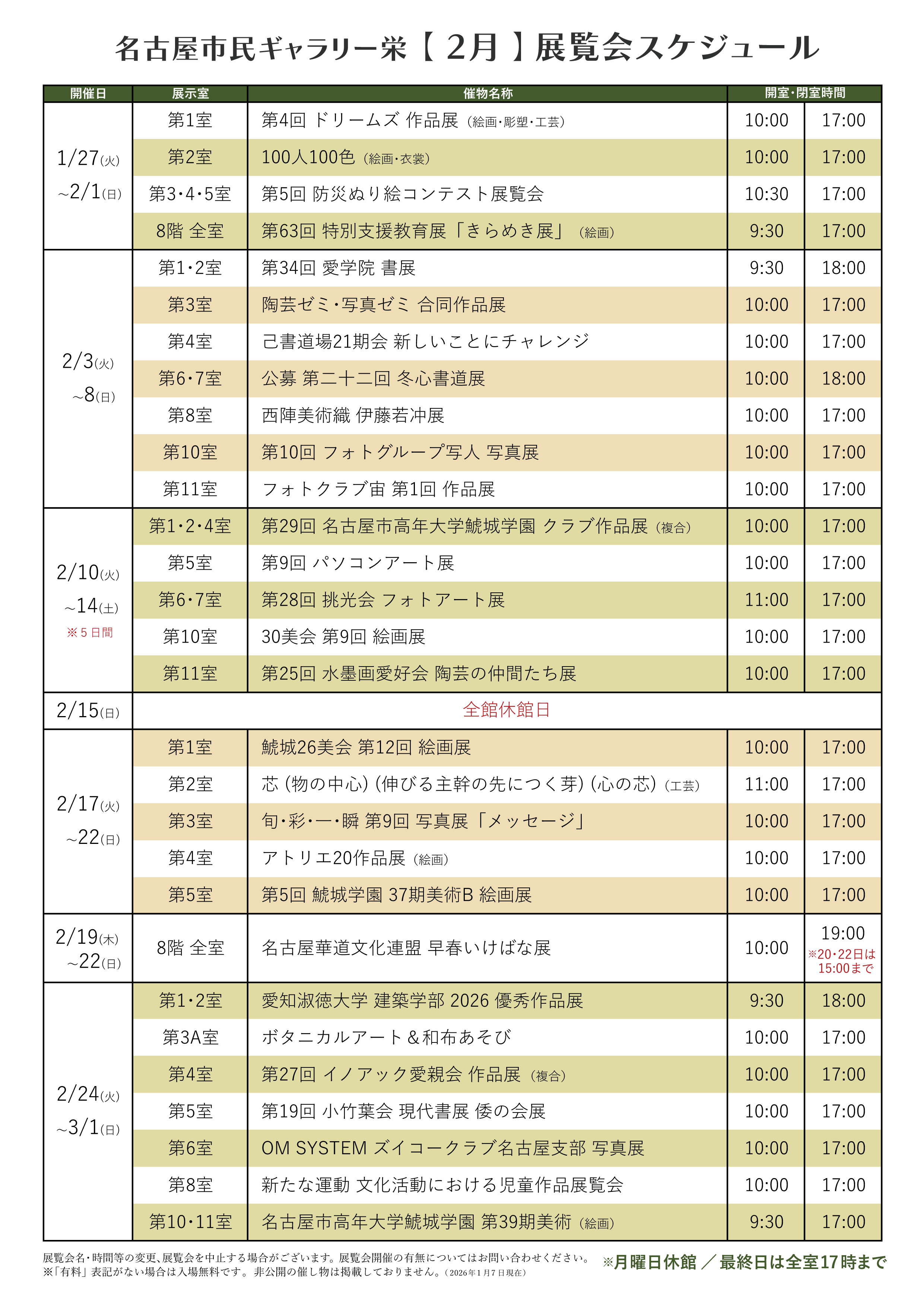【市民ギャラリー栄】2月 展覧会スケジュール